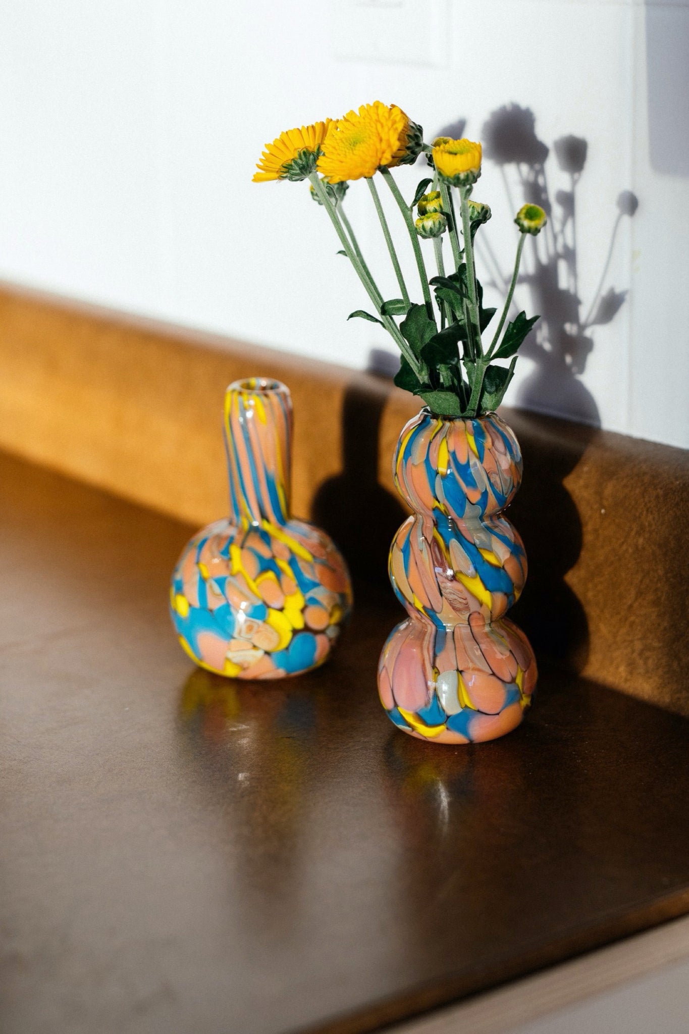 This is a one of a kind glass blown multi-color mini vase. Handmade with love in Vancouver, BC.