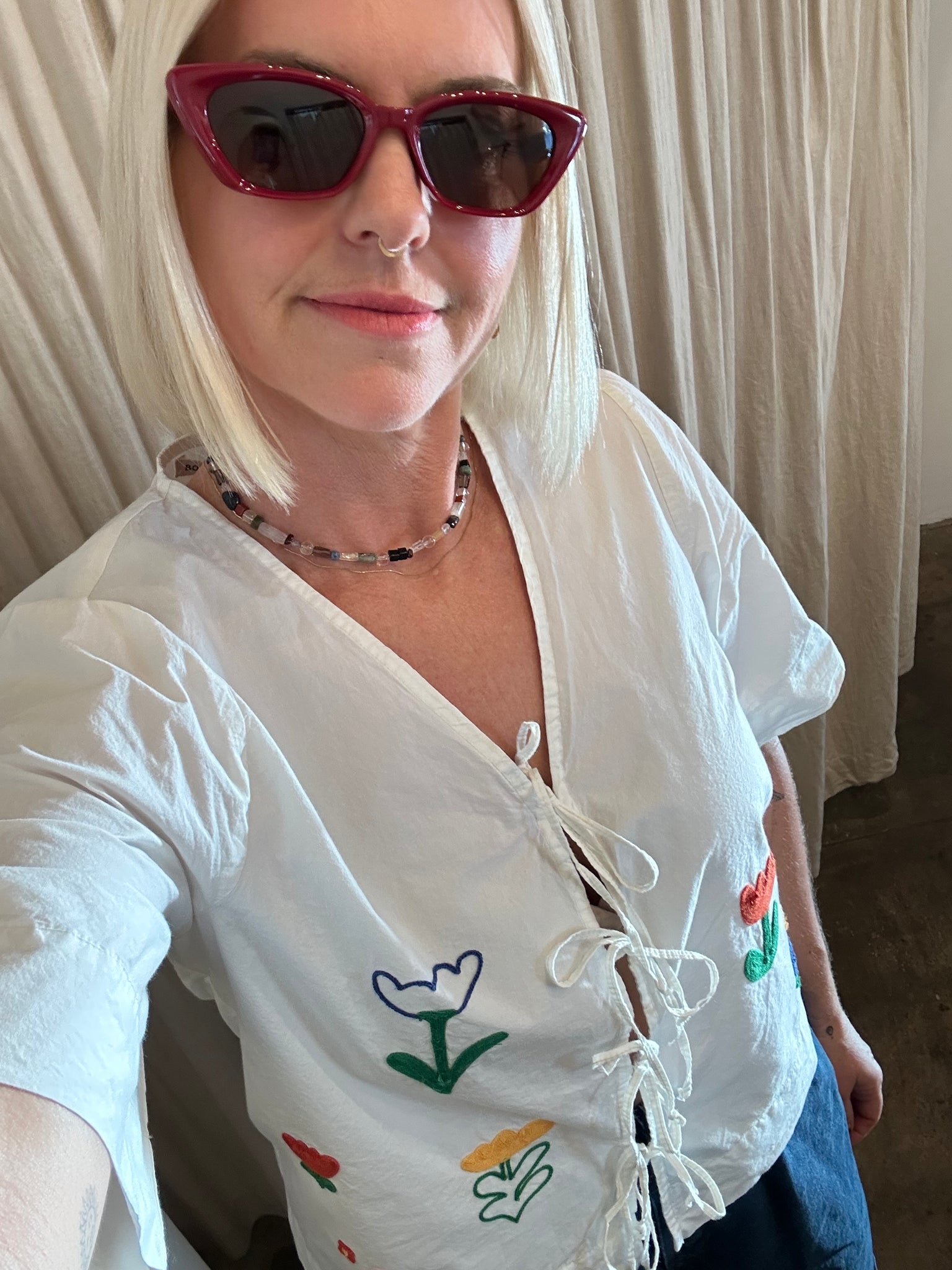 This smaller cat eye frame with sculpted details is perfect for the beach and beyond. 100% UVA, UVB and UVC protection with a polarized lens.