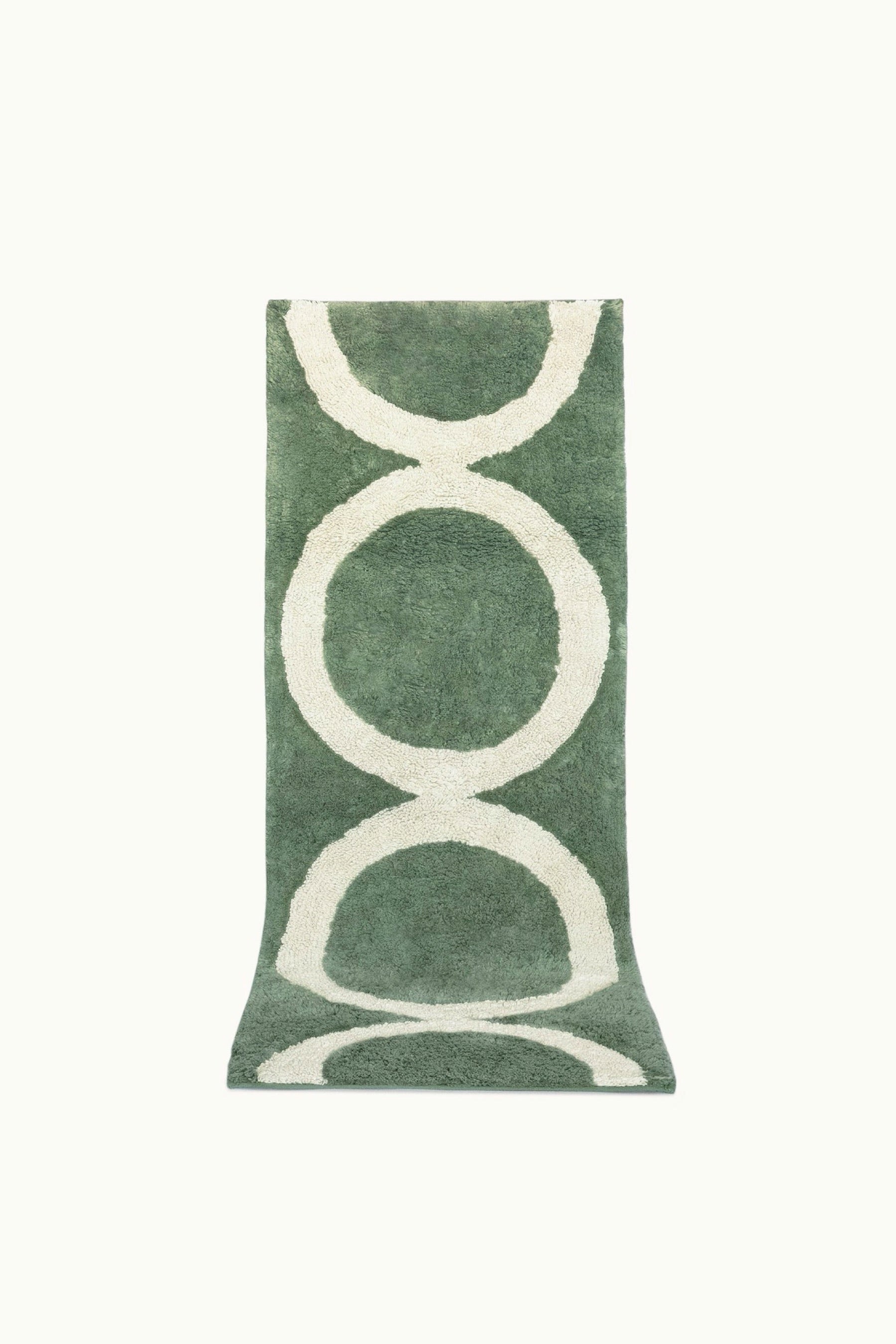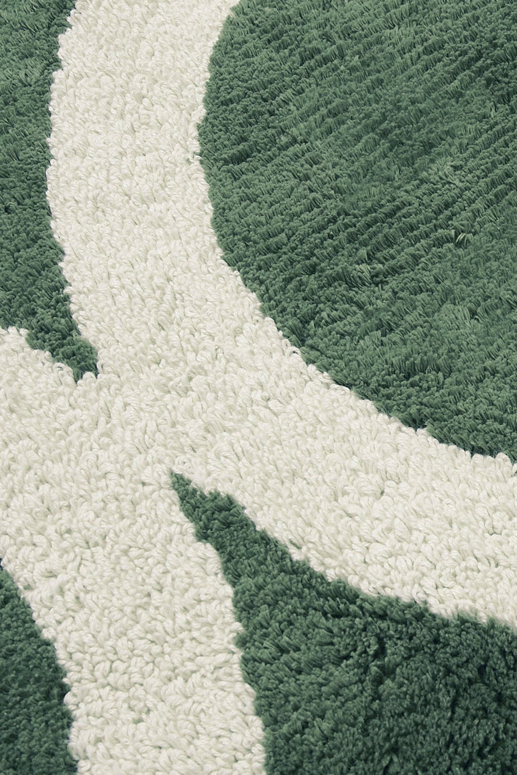 The Palomino Bath Mat has a geometric design in Camel and Natural and is handmade of plush tufted cotton. Ethically produced and hand tufted in India.