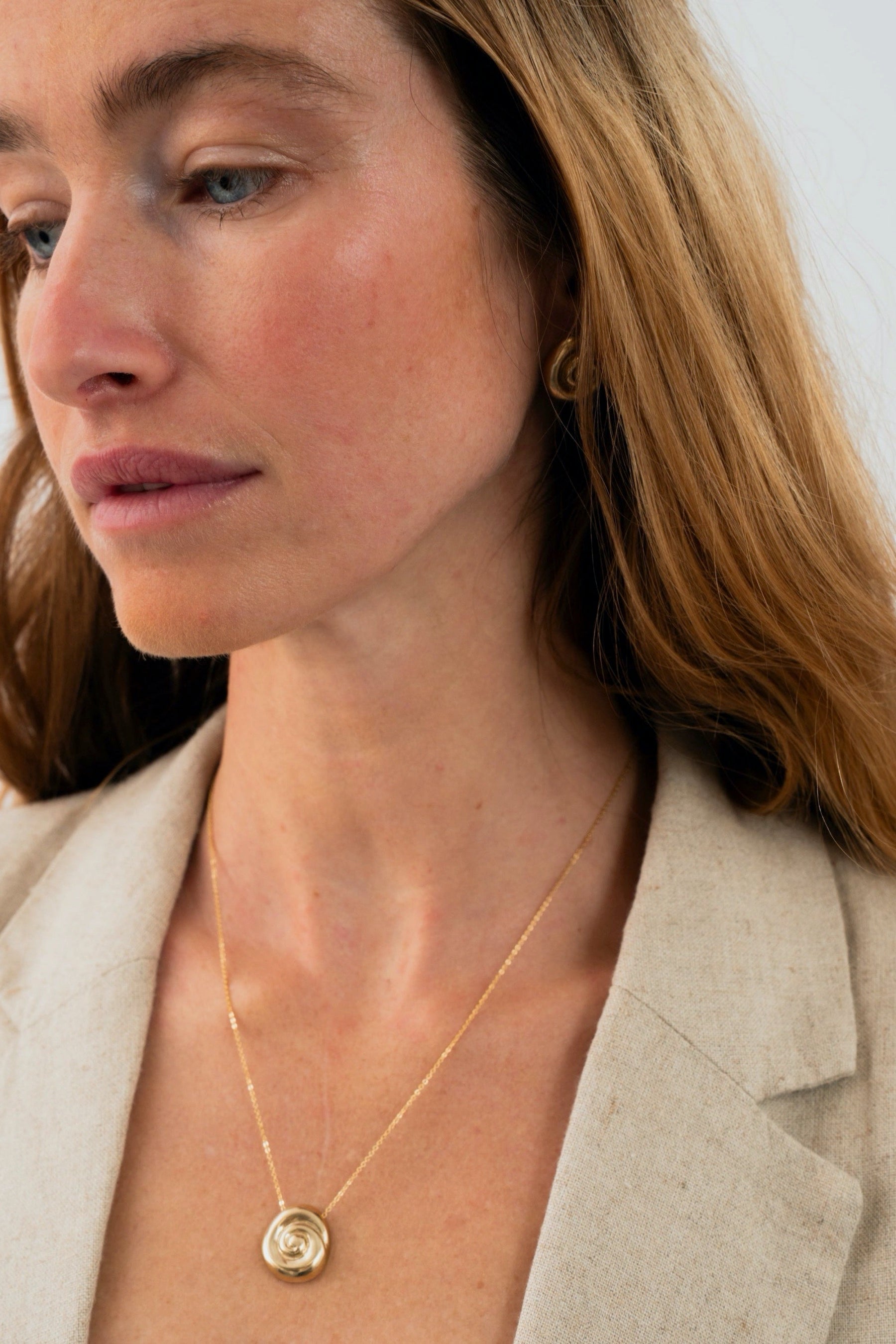 The Compass Necklace is a powerful symbol of growth, transformation, and the infinite journey we are all on. Inspired by the nautilus spiral, this design represents an ever-expanding path that remains grounded at its core.