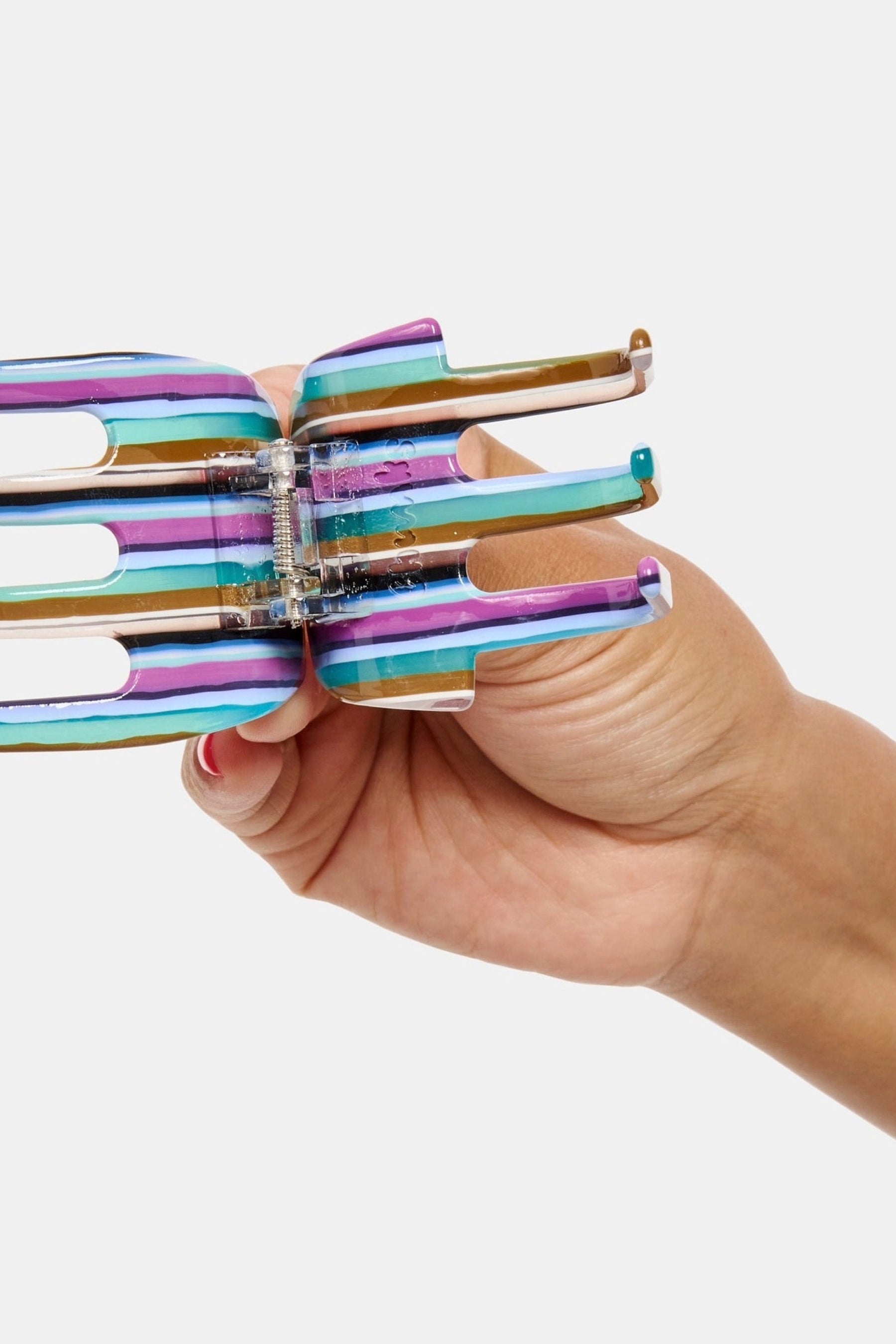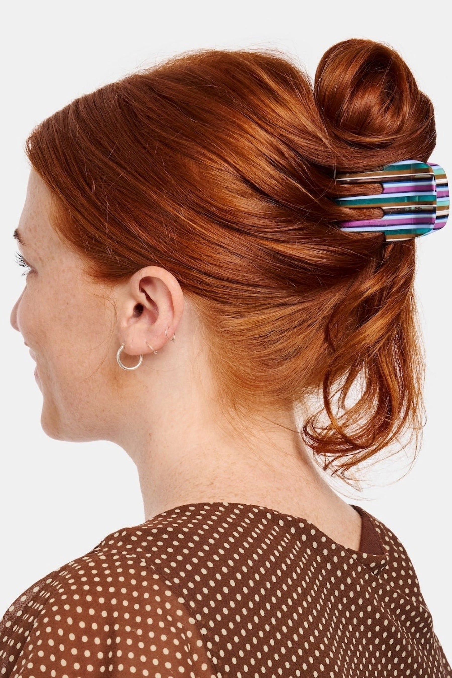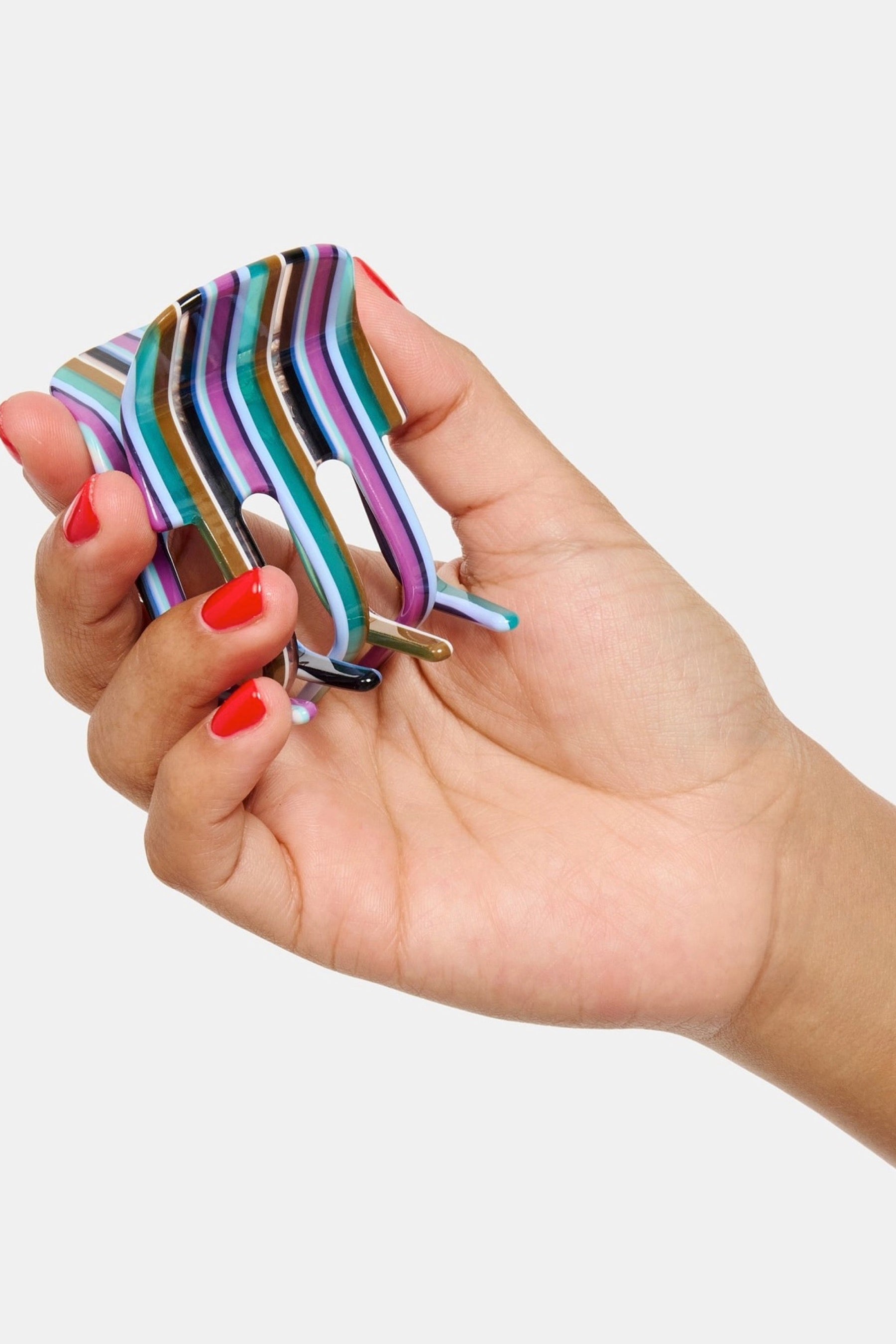 This medium claw is uniquely perfect for curly, textured, medium to thick hair. Large teeth give a gentle but firm hold, without crushing curls.