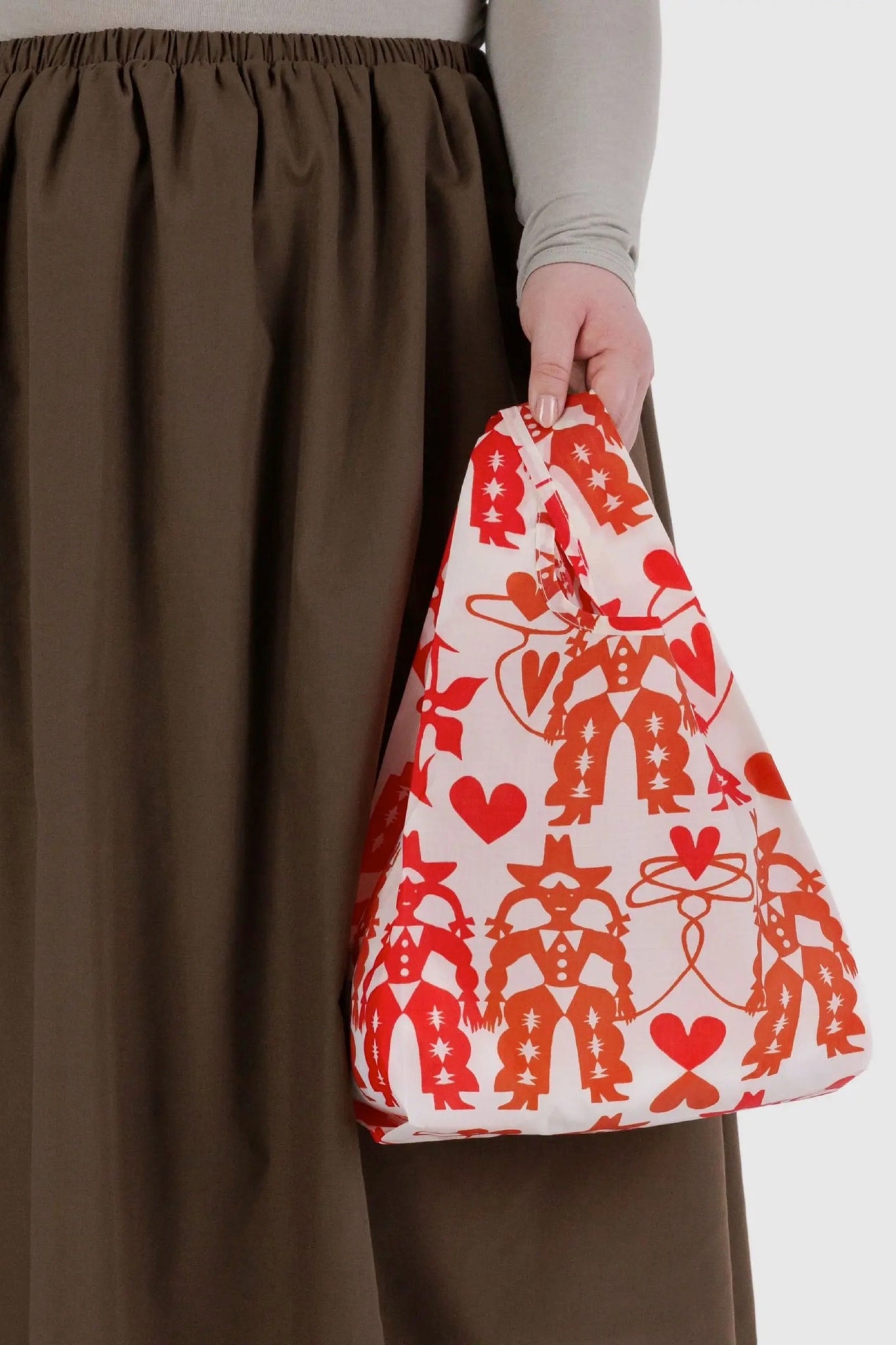 A smaller version of Baggu's best selling reusable shopping bag. Perfect for your lunch, a six pack, extra shoes, or a trip to the corner market. Machine Washable.