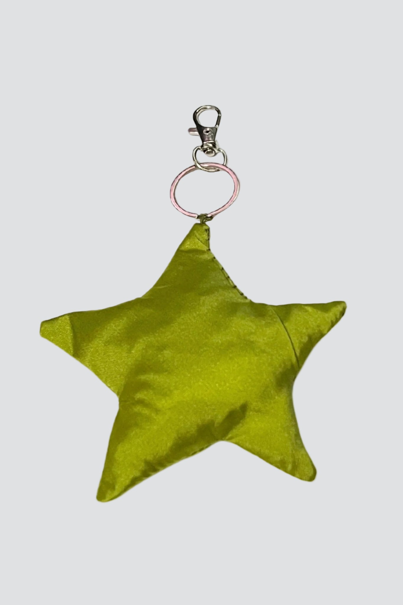 This bag charm is handmade in New York using fabric waste and deadstock fabric. The inside is stuffed with leftover fabric shreds.