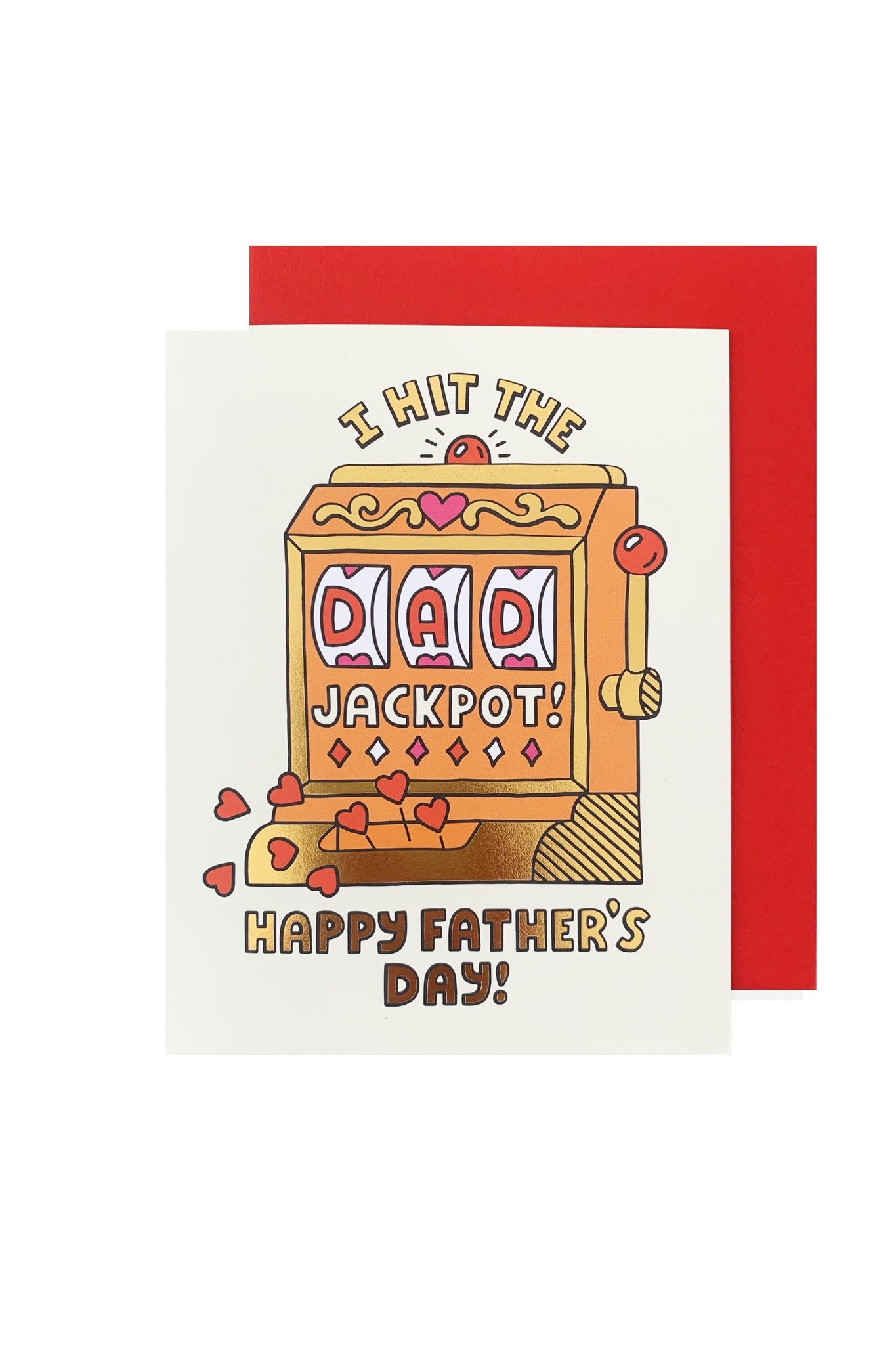 I Hit the Dad Jackpot! Happy Father's Day". Blank inside and illustrated by Danny Miller.