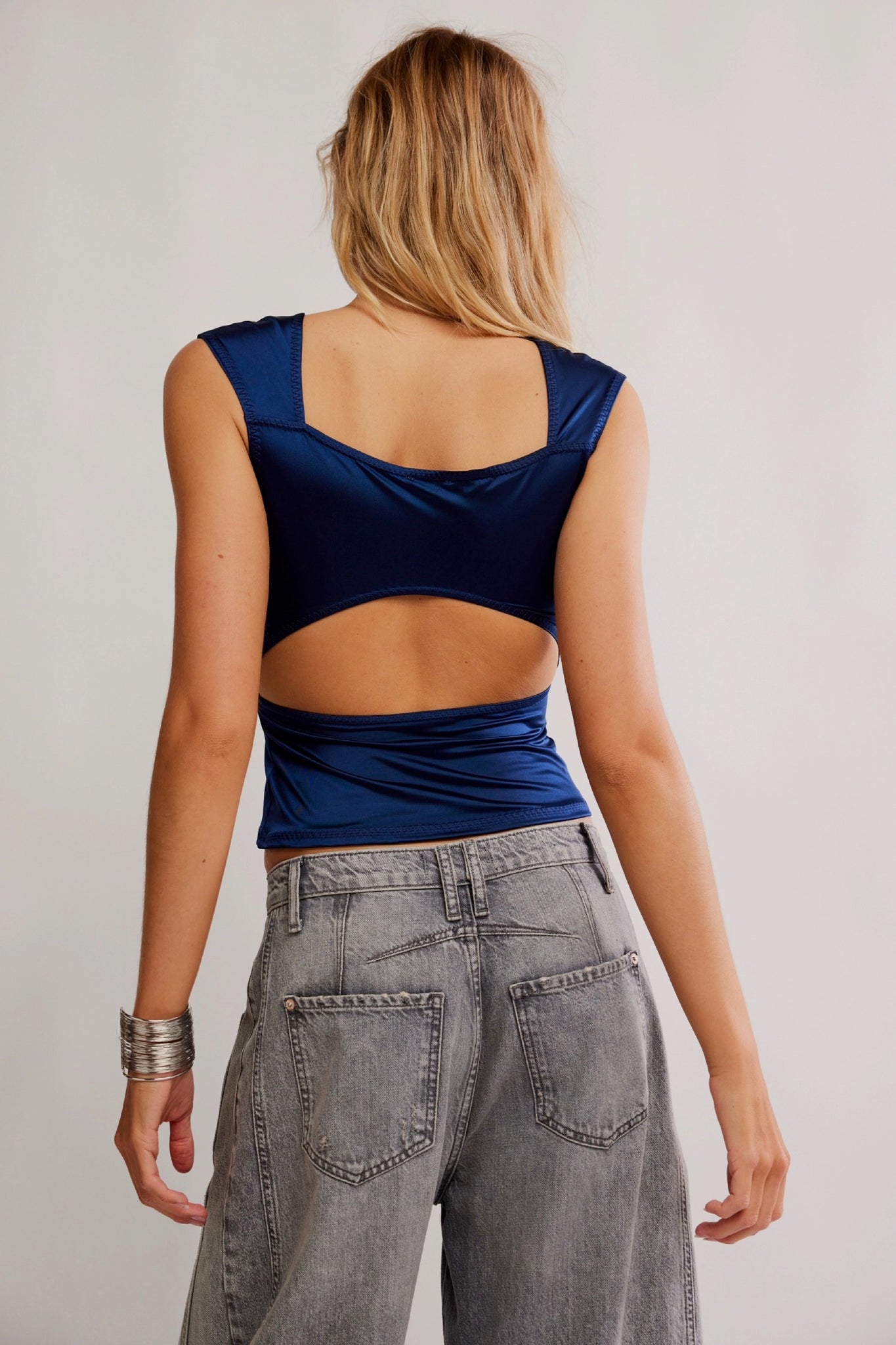 Featuring a classic straight neckline and a flirty open back design, it's the perfect piece for showing off your style with a modern twist.