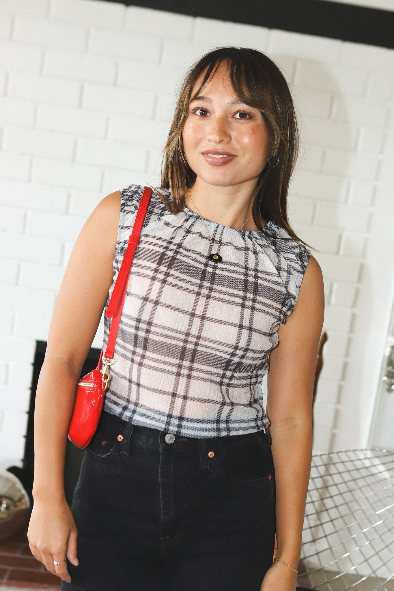 The Mist Ruched Tank is made from lightweight crinkled mesh with a semi-shiny finish and medium stretch. Soft and textured with delicate ruching along the neckline and a sleeveless, cropped silhouette.