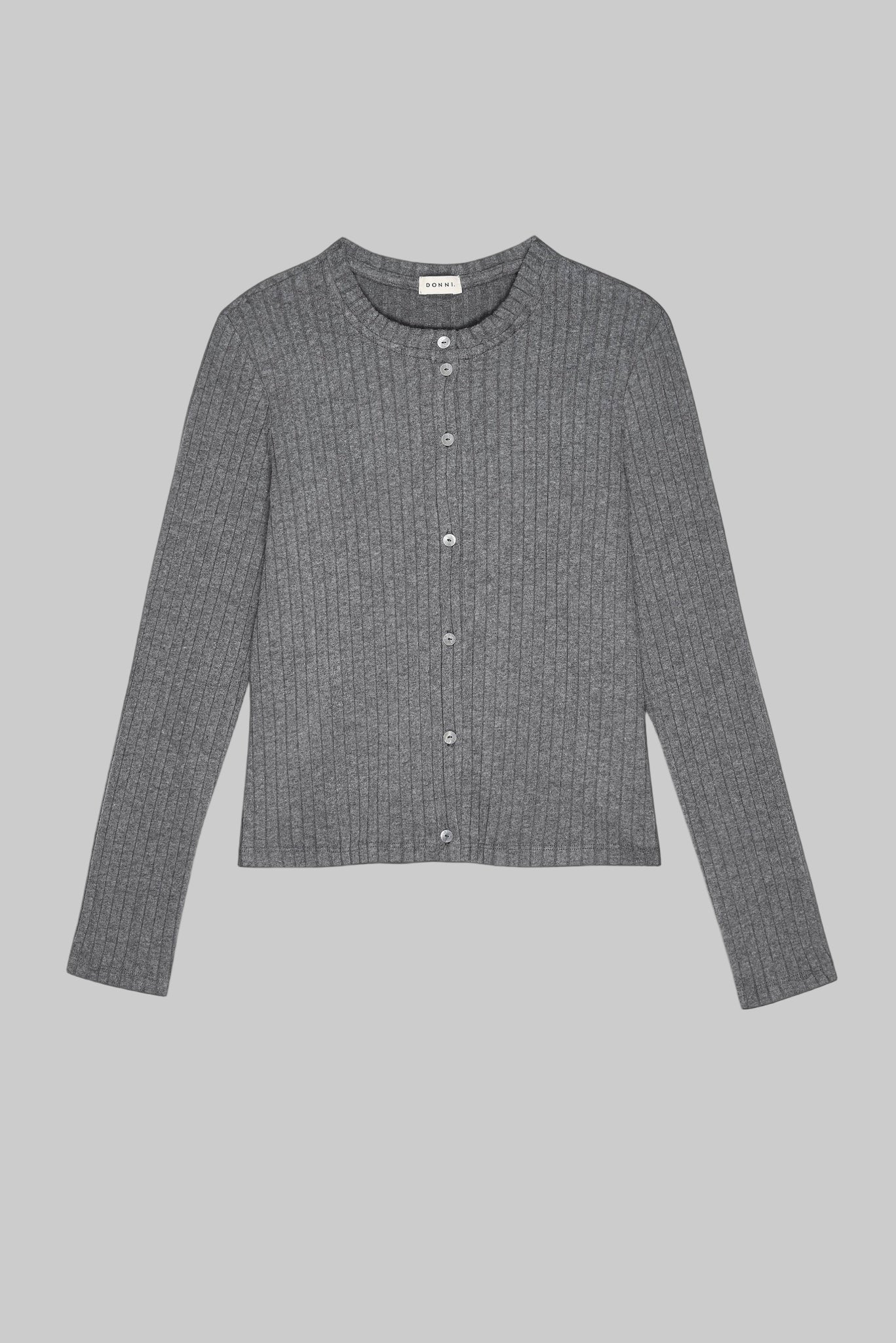 Get cozy with the Charcoal Sweater Rib Cardi. Made with charcoal-colored ribbed material, this cardigan is perfect for staying warm and stylish.