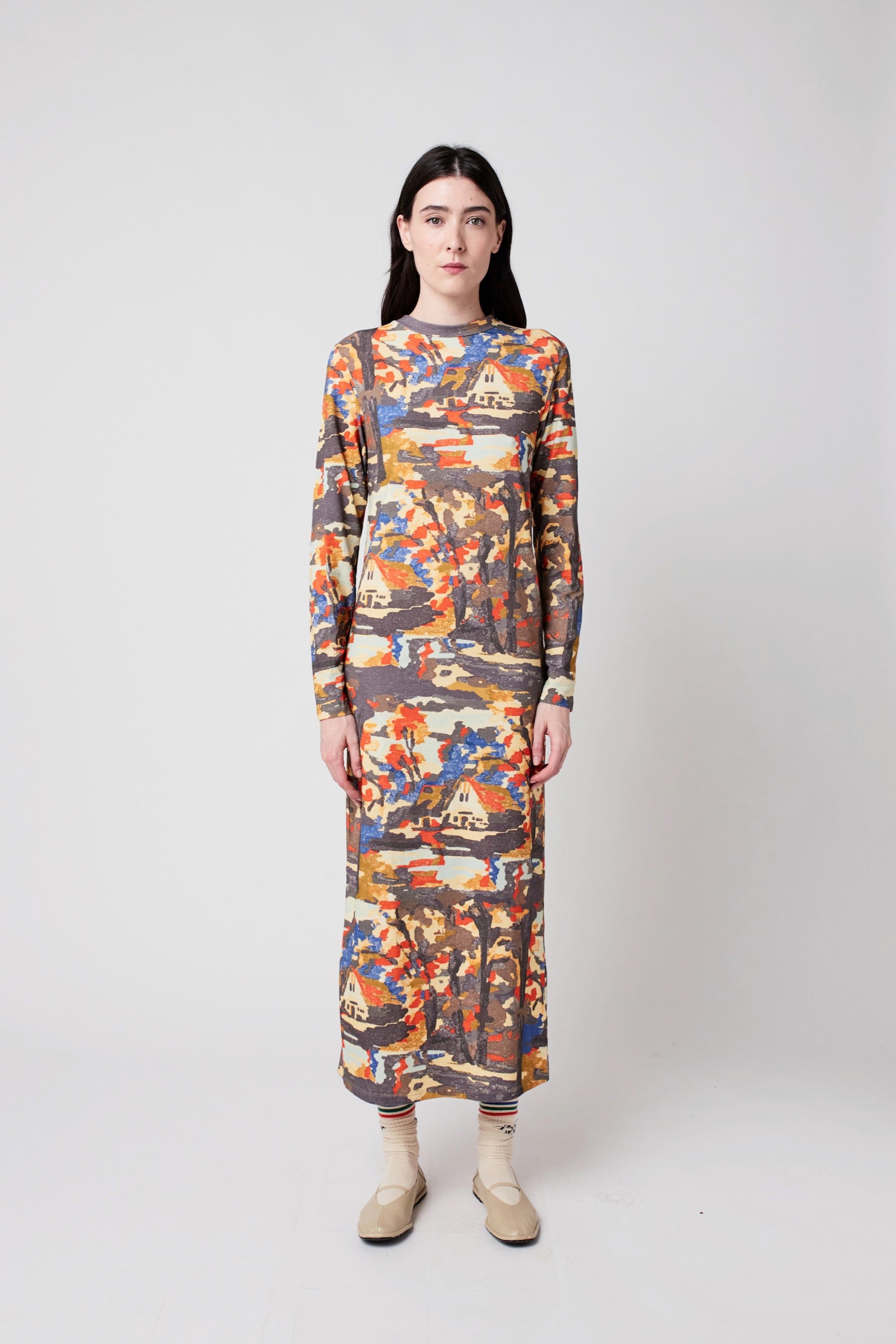 Multicolor dress, designed with a slim fit, midi length and stretchy fabric in a custom print. Made in Spain.