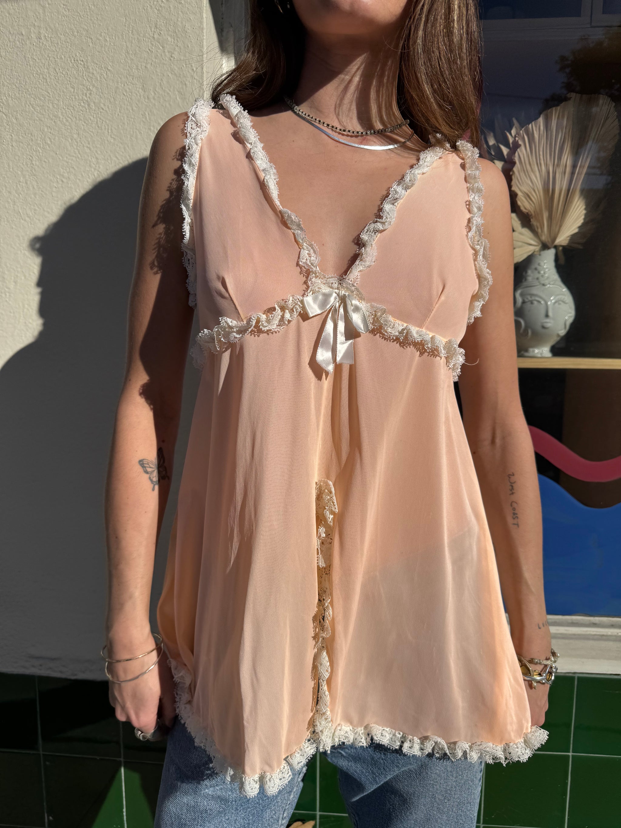 Peach Lace Mini Slip Dress
