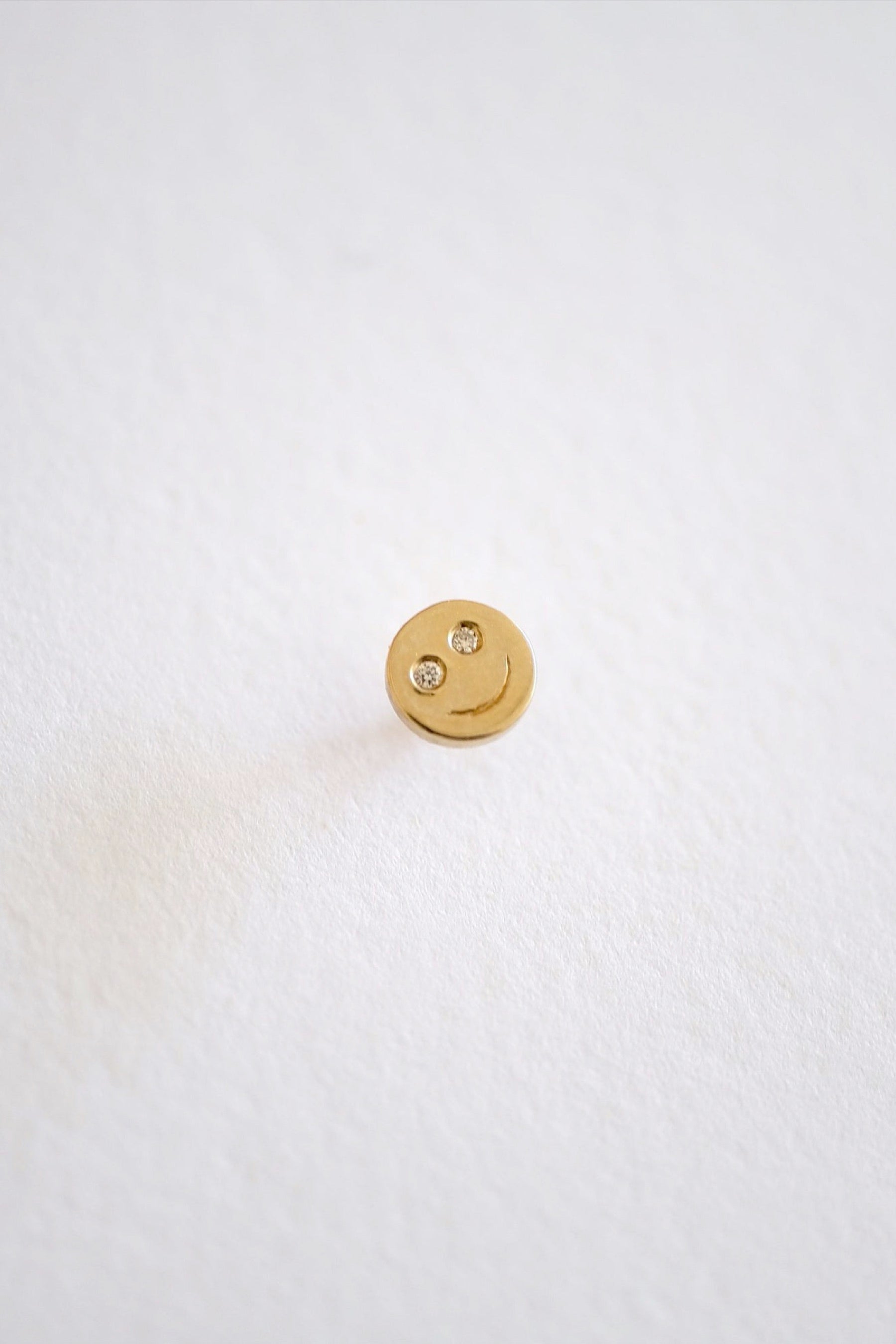 Pure optimism in diamonds and gold, Gjenmi's Happy Times Earring features a gold happy face set in white diamonds. Made in Los Angeles. Sold as a single earring, if you would like a pair please purchase two.