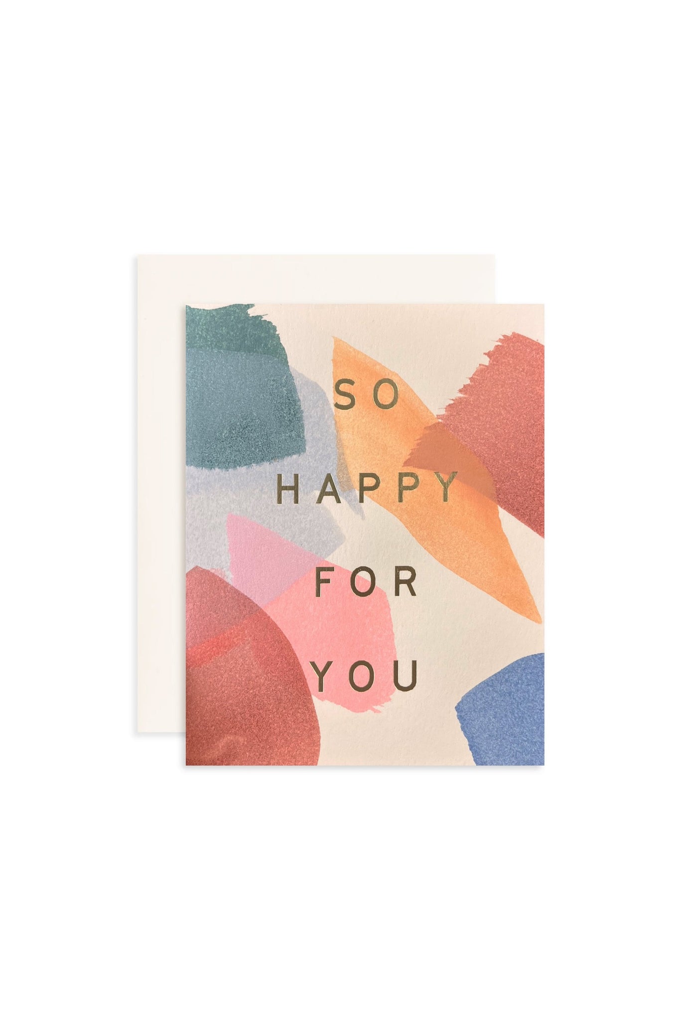 Hand painted folded card with foil lettering. Each card has a unique abstract design. Paired with a patterned envelope.