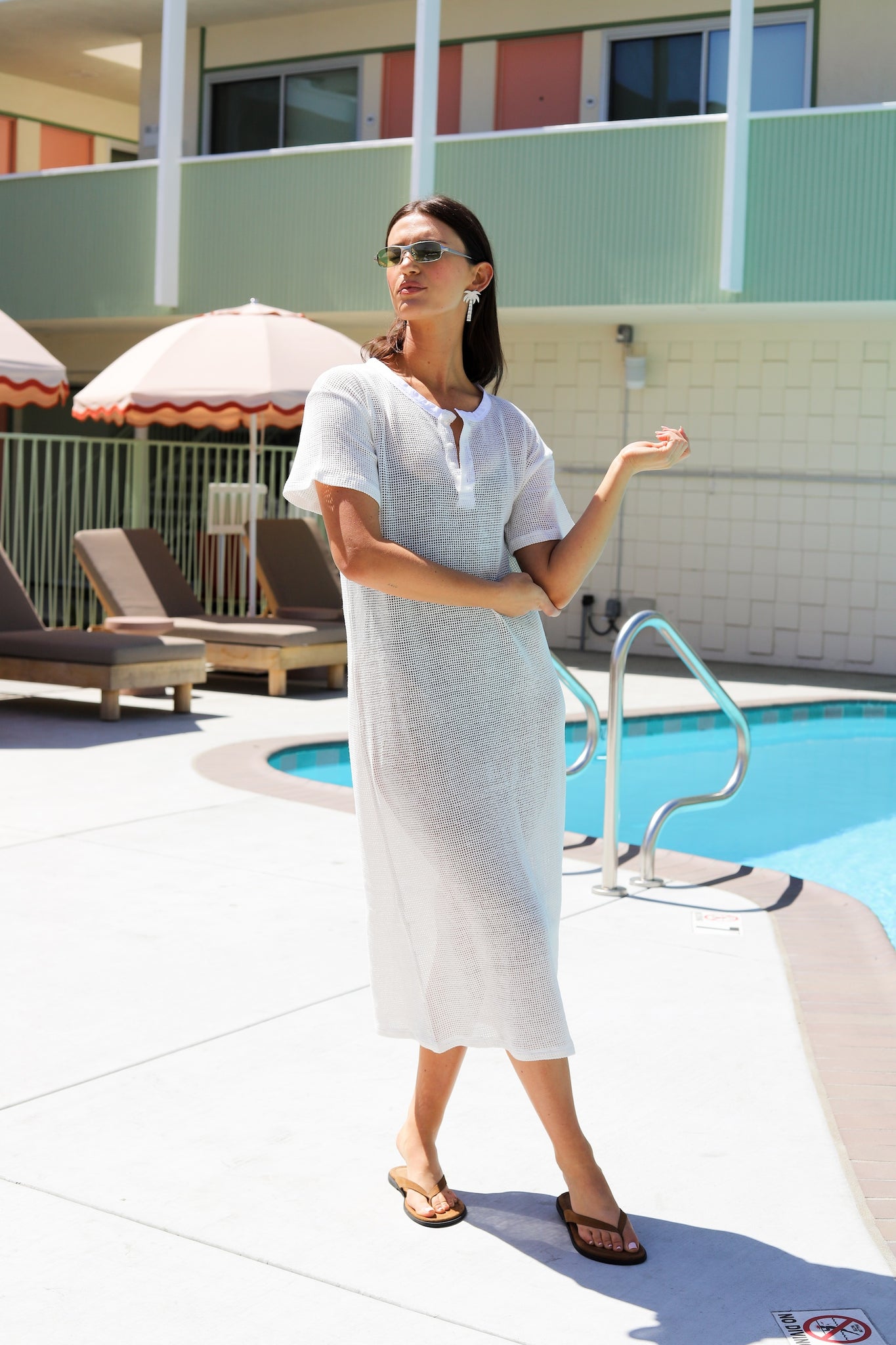 Made with lightweight cotton grid mesh, this tunic is perfect for making a statement while staying cool. Use it as a cover up or pair it with your favorite bottoms as a statement piece. Made in the USA with locally knit materials.
