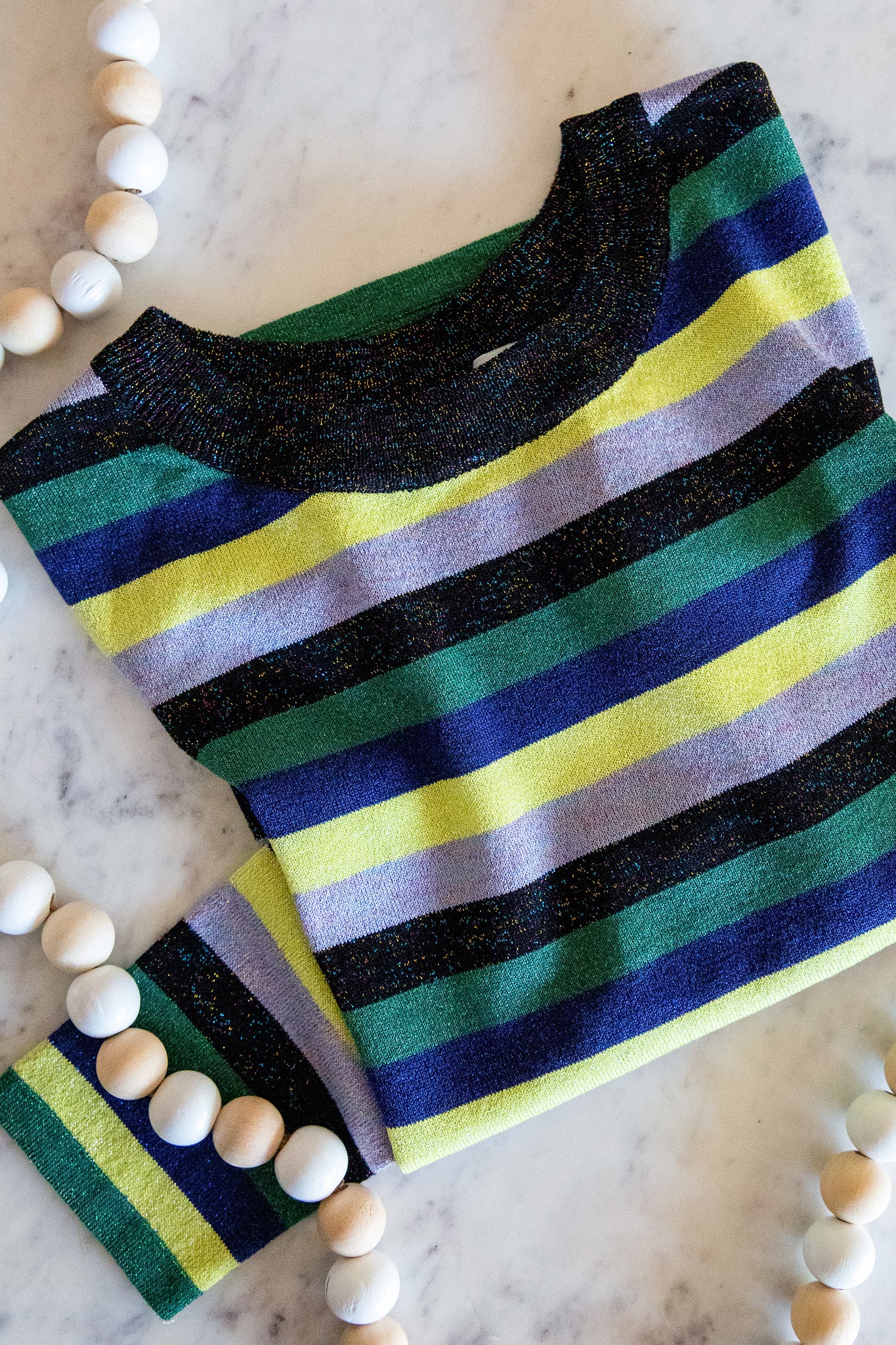 This Daydreamer sweater is our favorite transition to Fall piece featured in a bold stripe and fitted body perfect for layering!