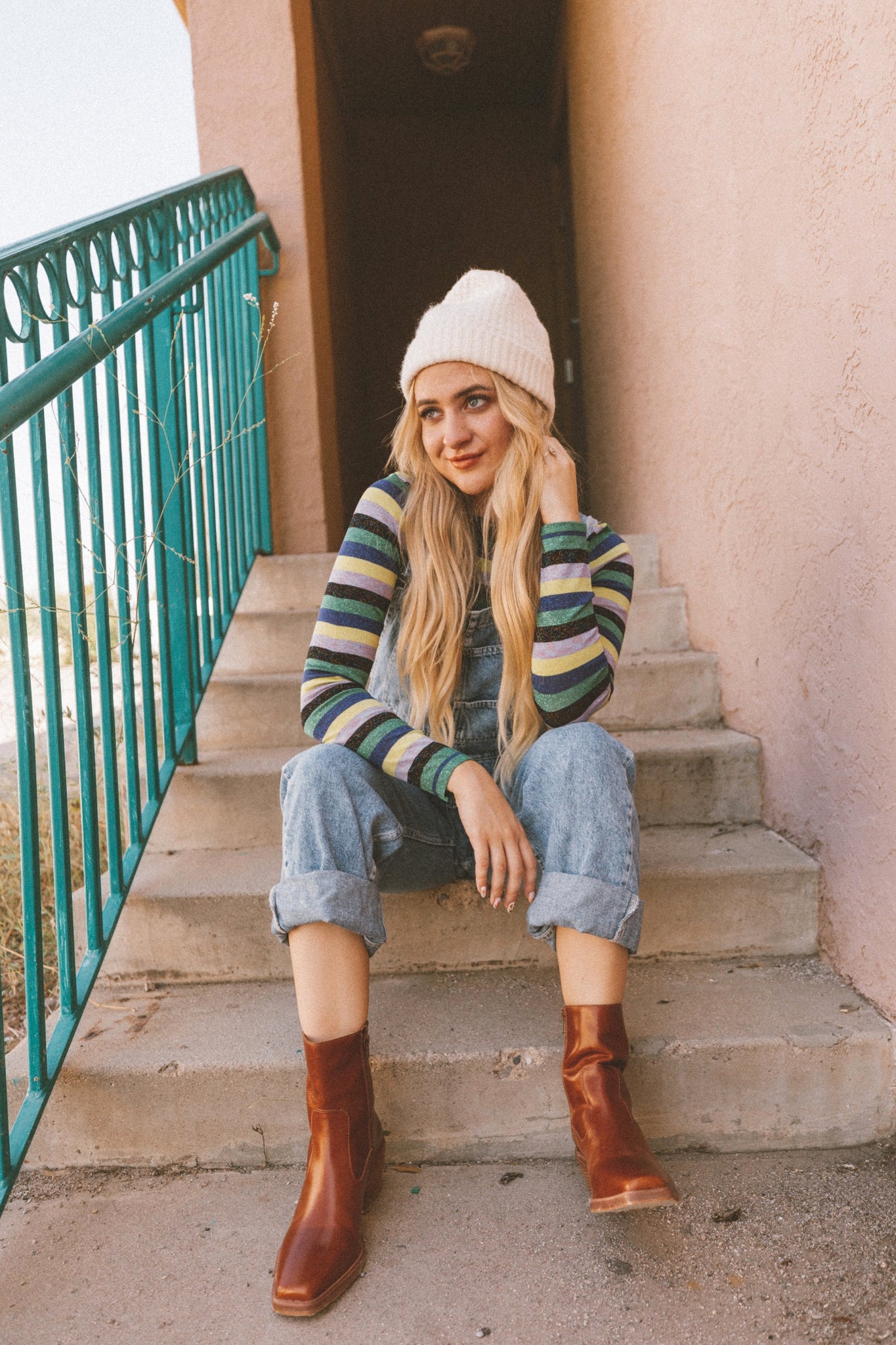 90s-inspired waffle knit beanie featuring fold-back ribbed band.