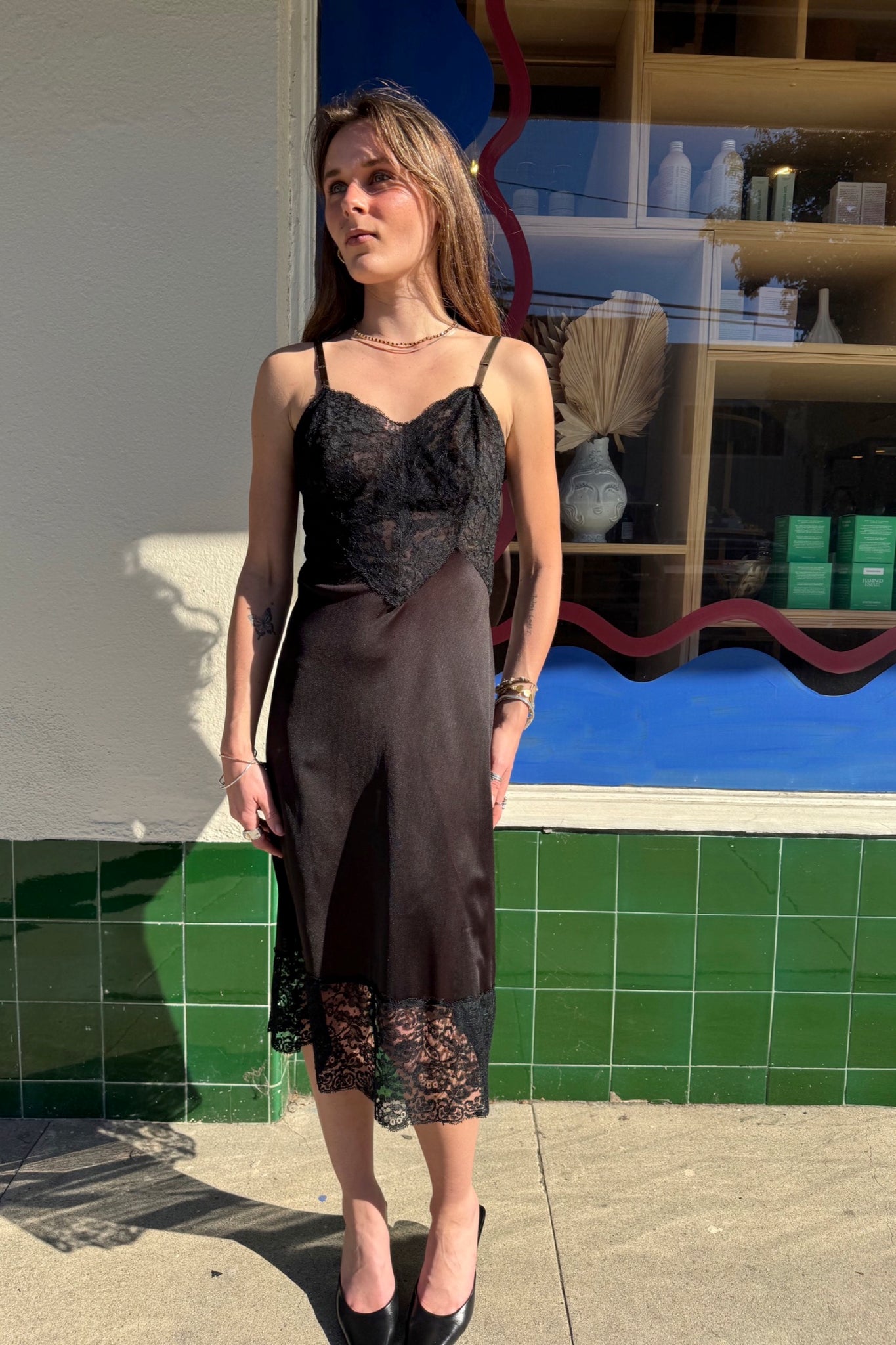 Black Lace Vanity Fair Slip Dress