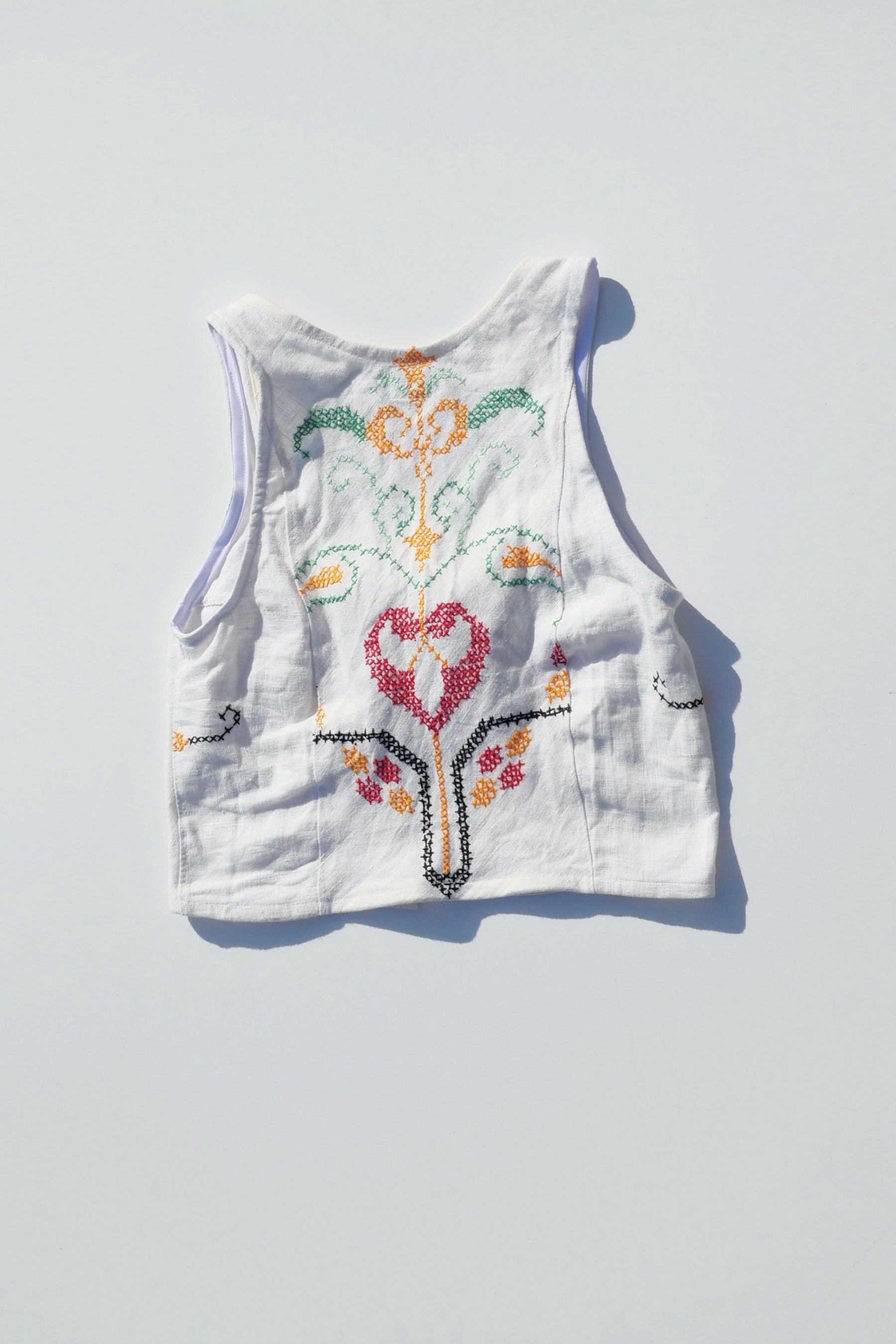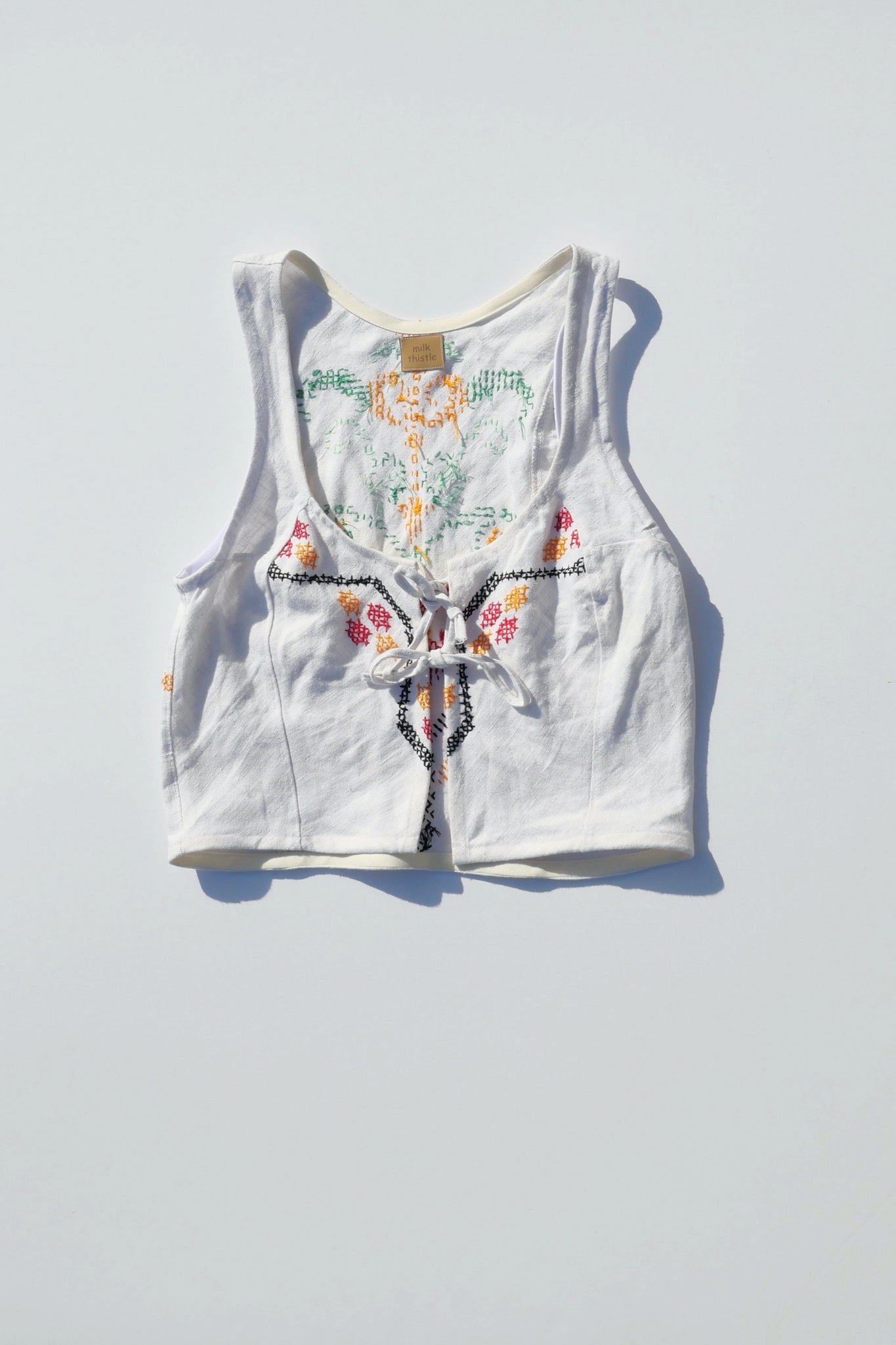 One of a kind tie front tank top handmade from vintage textiles in Long Beach, CA.