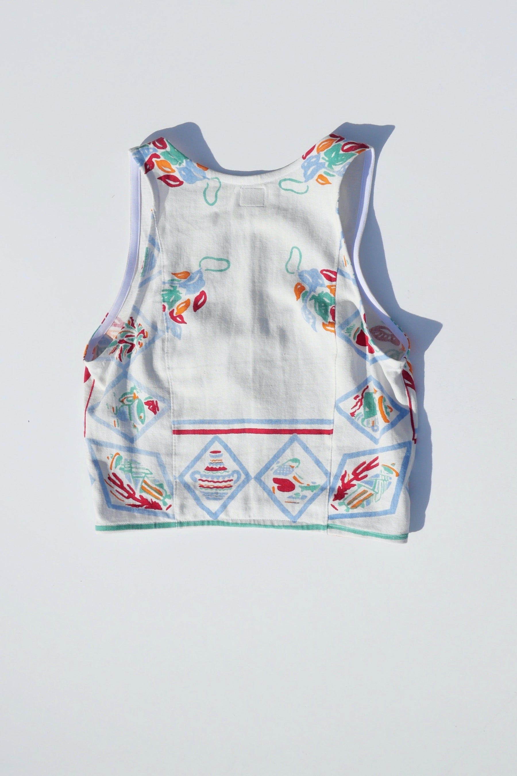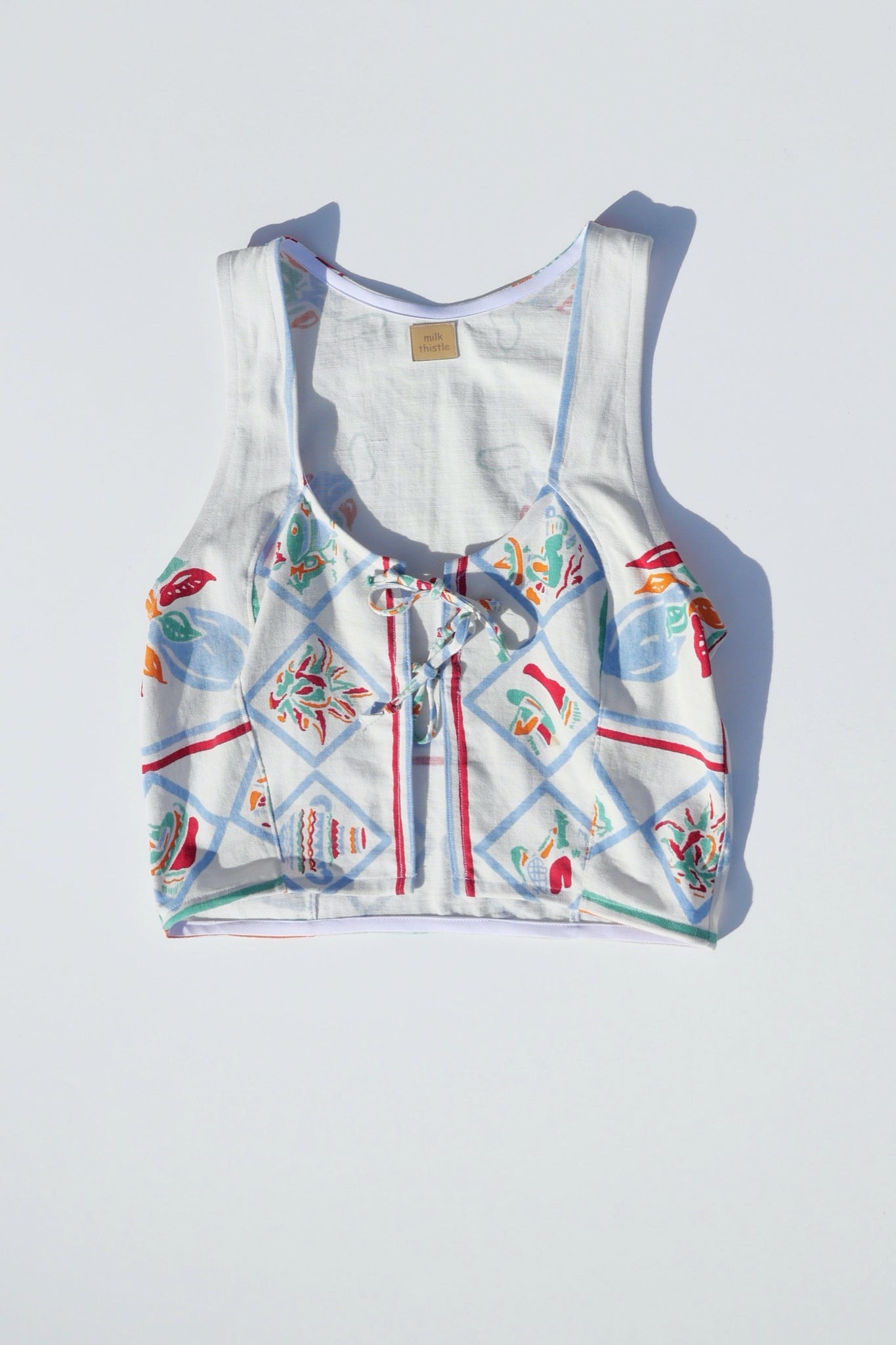 One of a kind tie front tank top handmade from vintage textiles in Long Beach, CA.