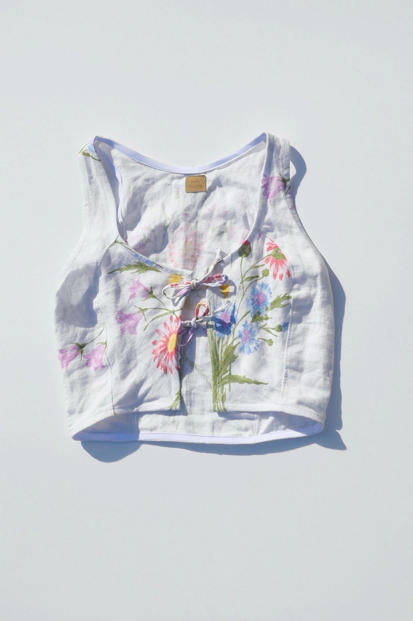 One of a kind tie front tank top handmade from vintage textiles in Long Beach, CA.
