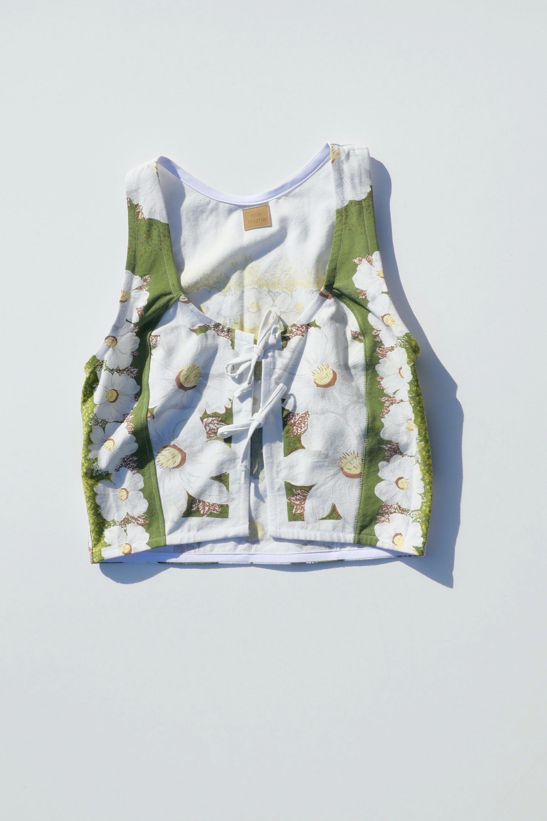 One of a kind tie front tank top handmade from vintage textiles in Long Beach, CA.