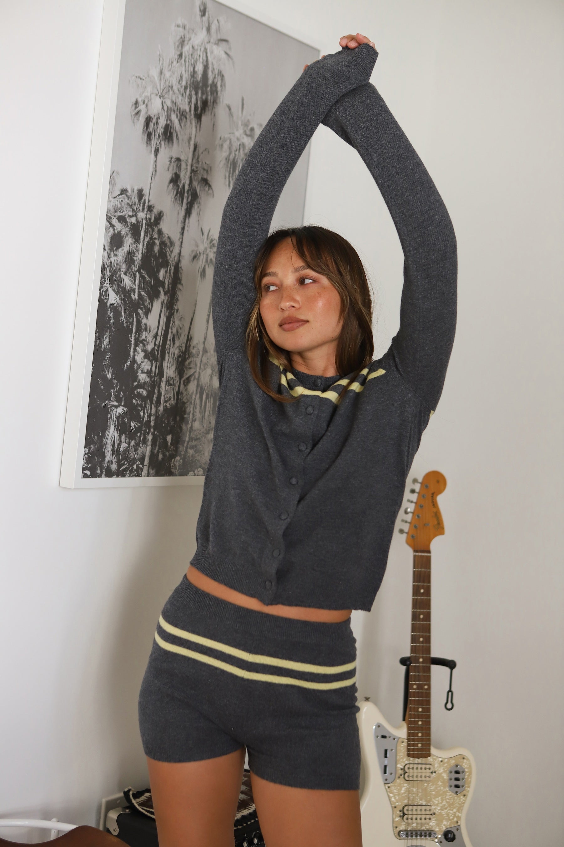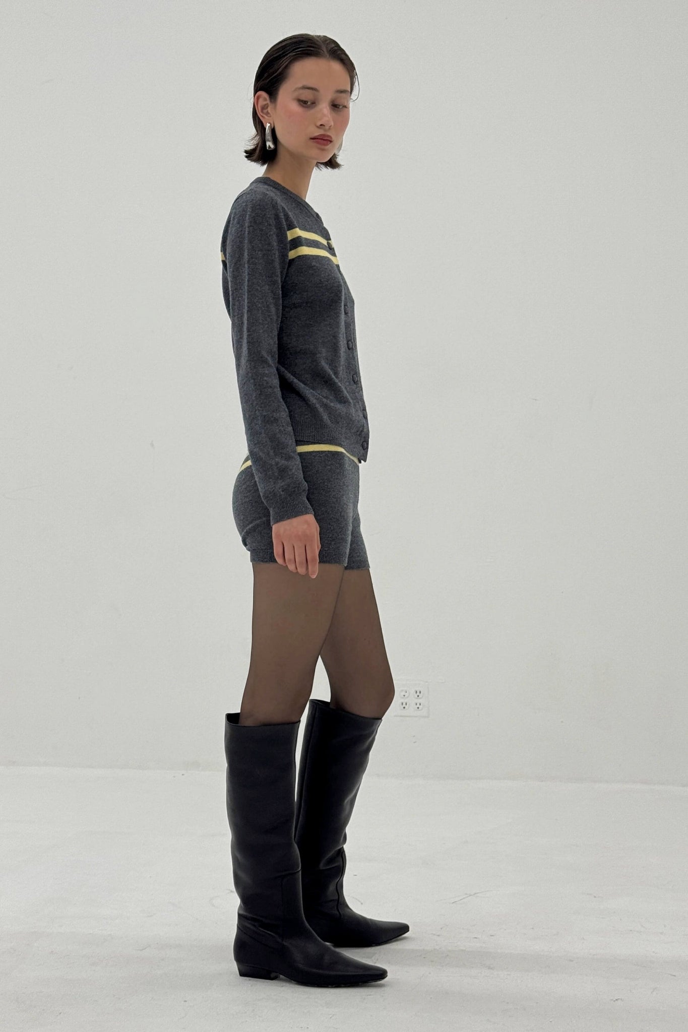 The Stripe Knit Shorts in Charcoal and Butter are made from a lightweight cashmere-wool blend with soft stretch and a smooth finish. Fitted and easy to move in, with contrast stripe detailing and a pull-on waistband. Anti-pilling, wrinkle-resistant, and designed for comfort without losing structure.