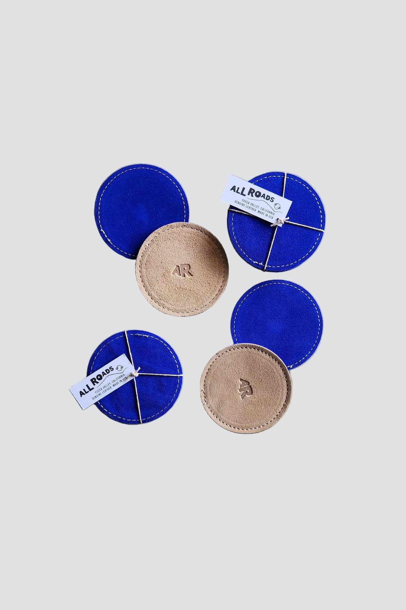 Double-sided suede coasters. One side of the coaster is Toast, the other side is light tan suede. Set of 4.
