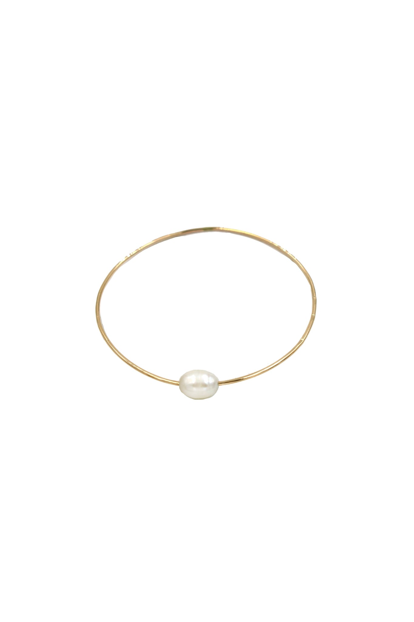 Simple gold fill bangle with White Pearl bead. Handmade in Long Beach, CA.