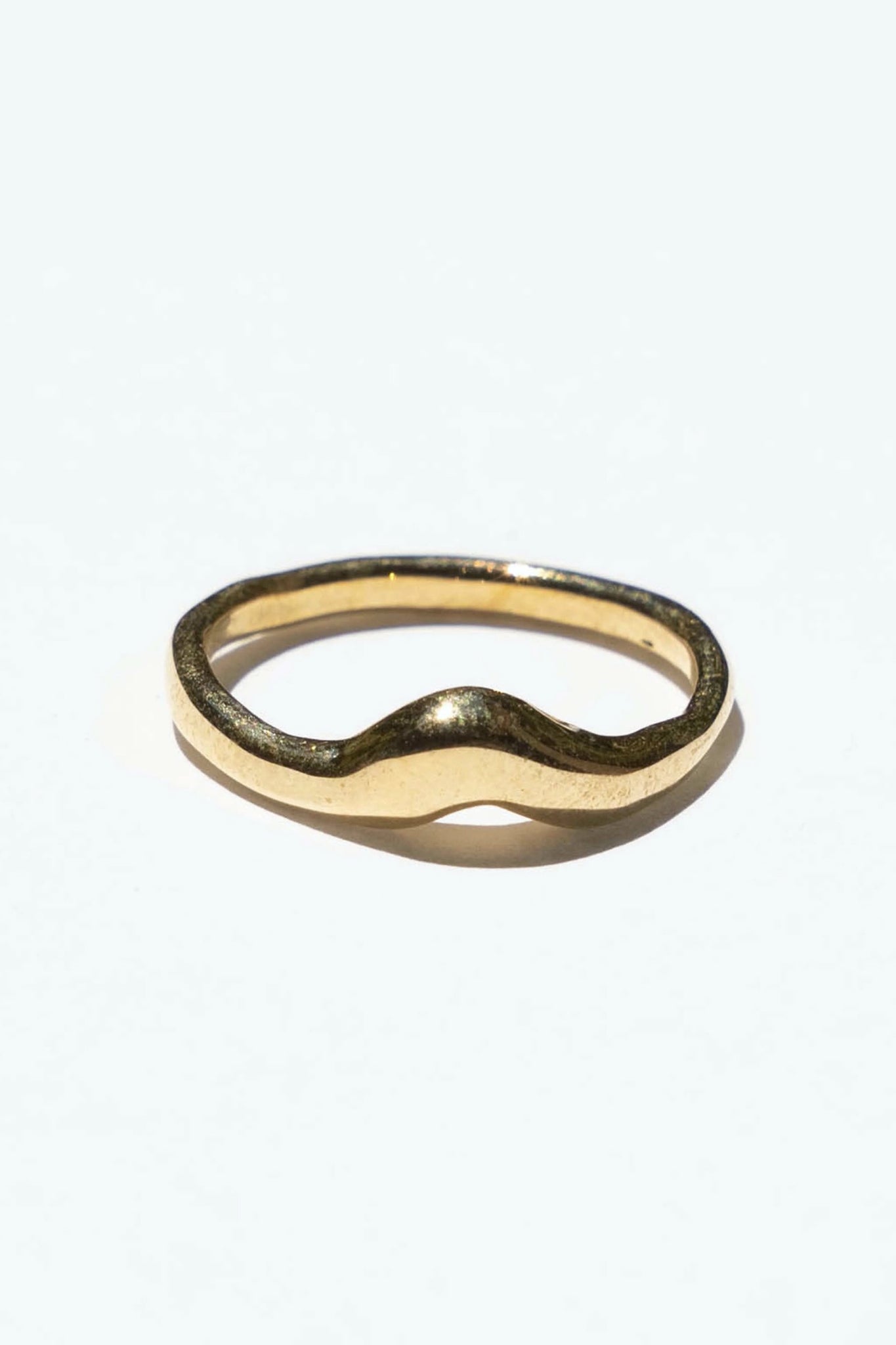 The Low Tide ring is inspired by the movement of waning water. Hand carved and cast with a high polish mirror finish.
