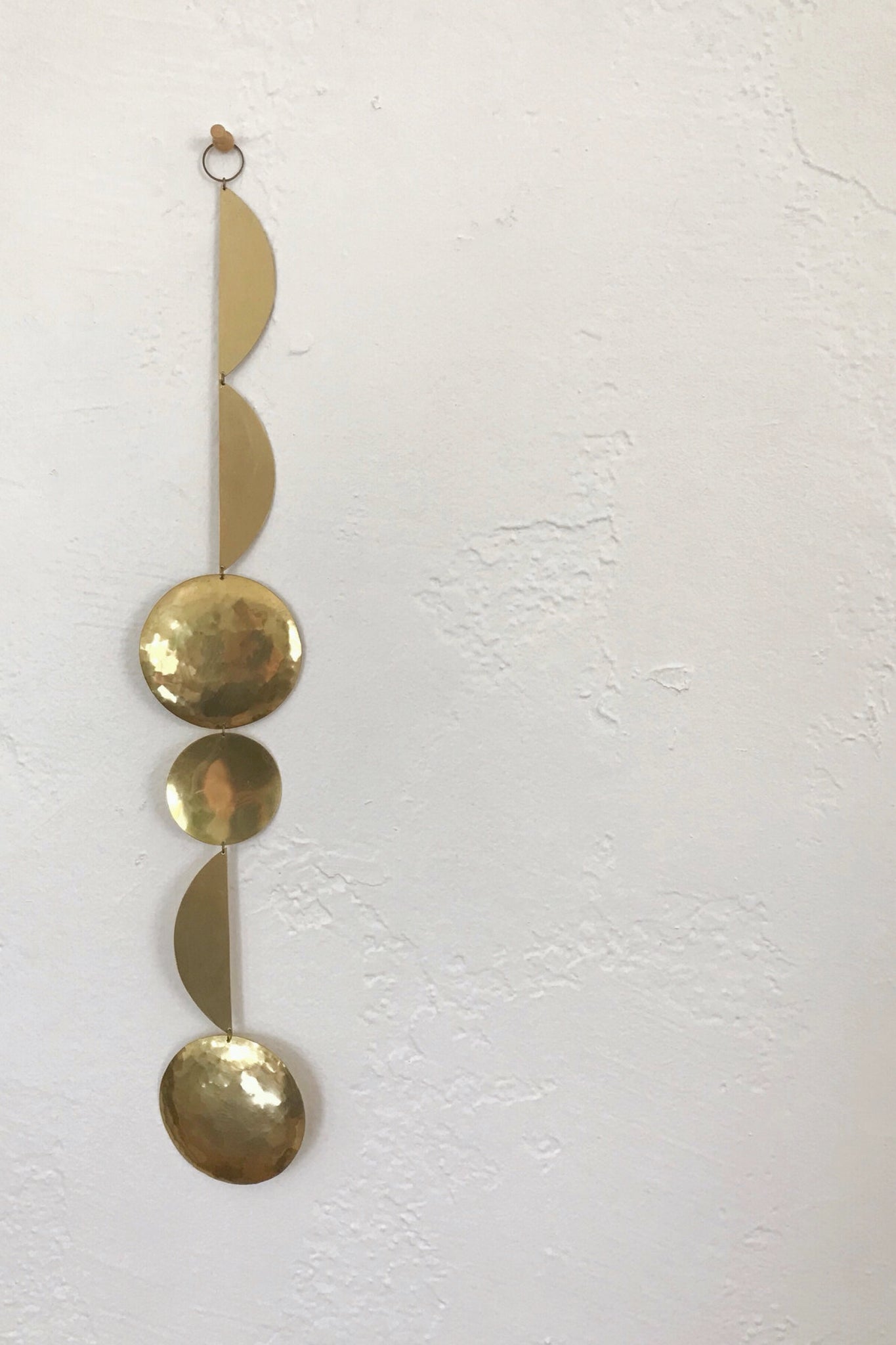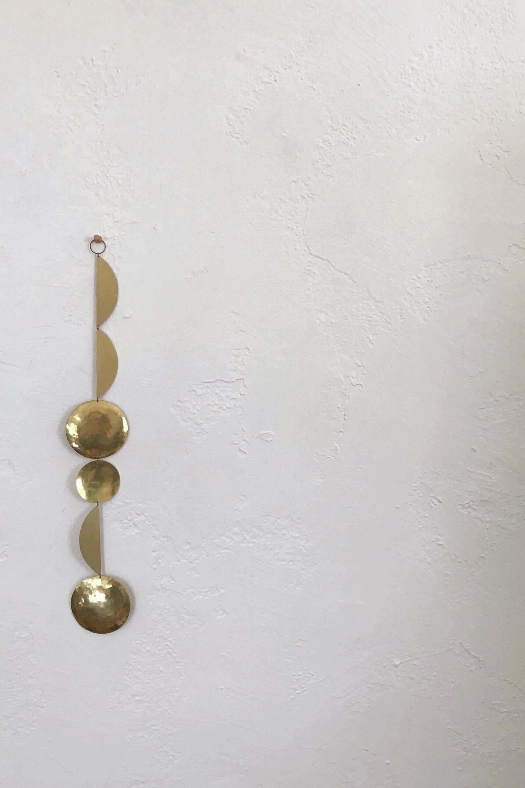 Add some shine to your home with these hand cut brass mobiles. Hang on the ceiling for movement or flat as a wall hanging. Handmade in Sacramento, CA.