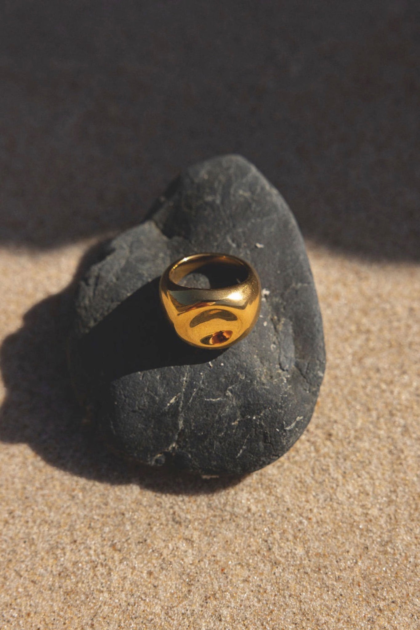 Make a bold statement with the Gold Palm Beach Ring, featuring a striking concave detail that catches the eye. Crafted from gold-plated stainless steel, this piece combines durability with a luxurious finish.