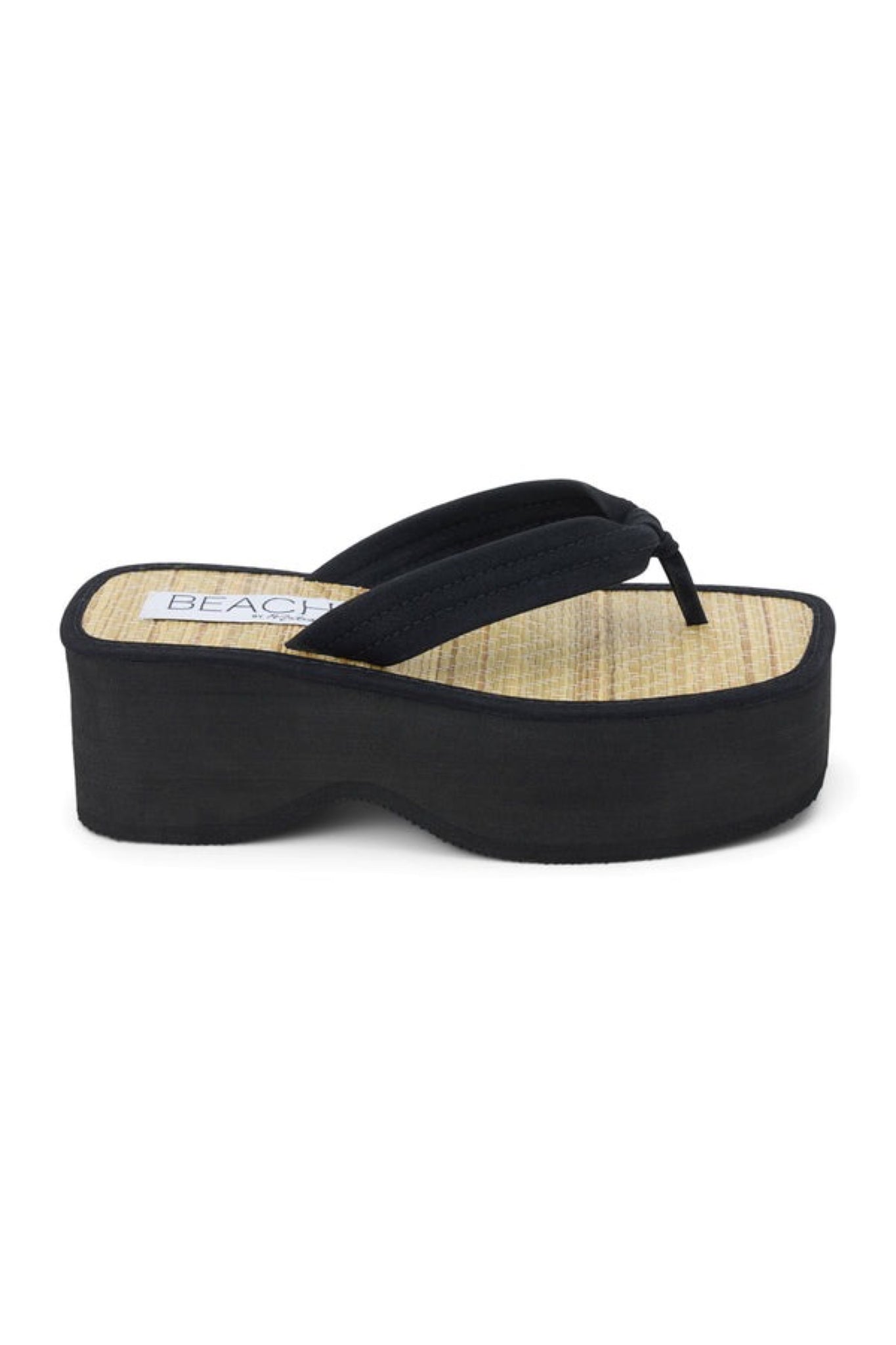 Summery platform sandals featuring a seagrass insole and a square toe.