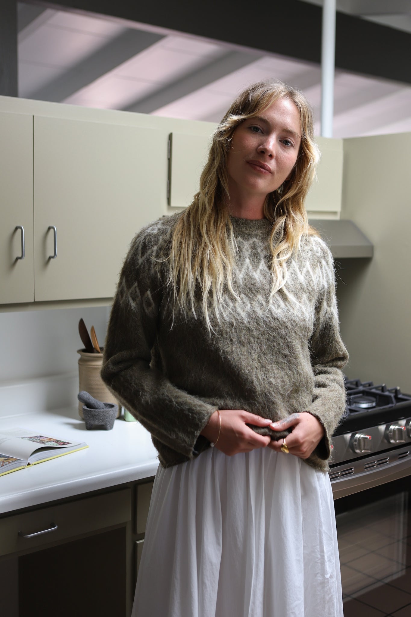 Knit from a soft, mid weight brushed yarn, the Wilson Sweater features a classic Fair Isle pattern with a fuzzy, textured finish. Designed with a relaxed fit and long sleeves, it’s an easy layer for cooler days.
