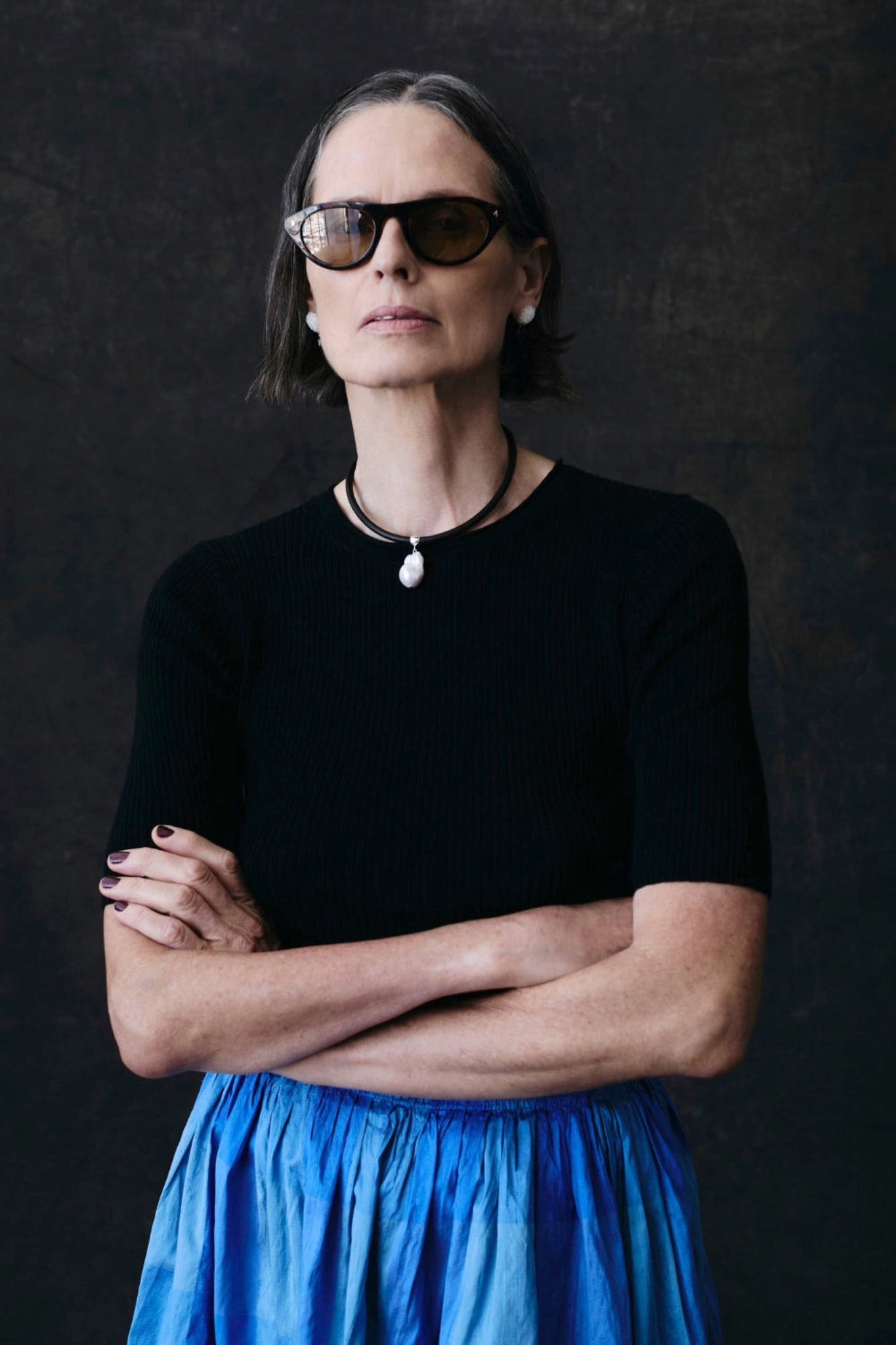 A reinterpretation of the classic pearl pendant, the Rosemary Necklace is an exploration of texture and light. The freshwater baroque pearl pendant is completely unique, reflecting the complex subtleties of nature. Silver tipped stitch leather cording grows softer and more supple with every wear.