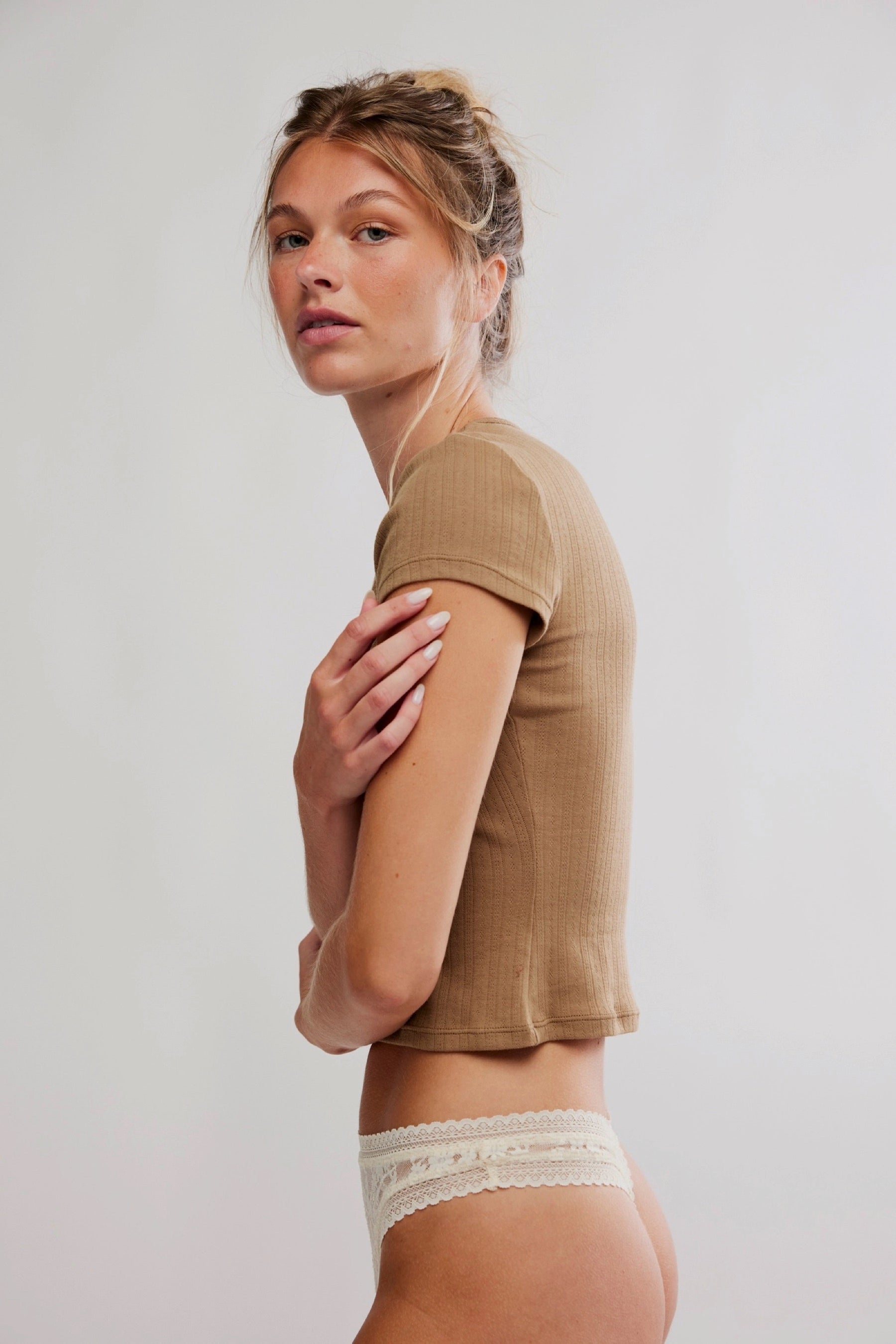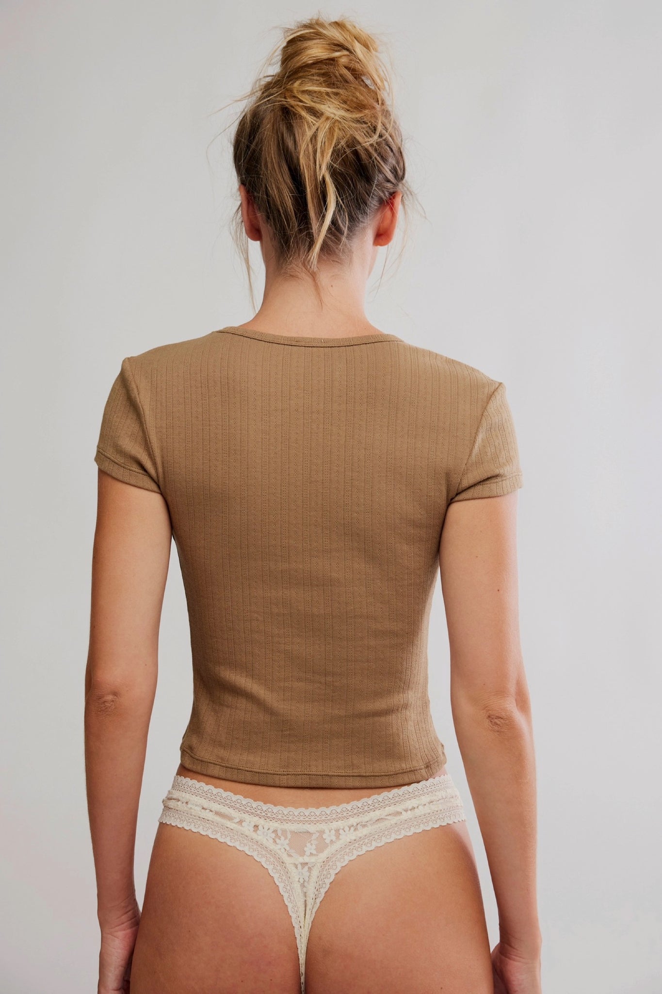 The perfect timeless tee, this short-sleeve is featured in a soft cotton fabrication and cropped silhouette with a pointelle detail.