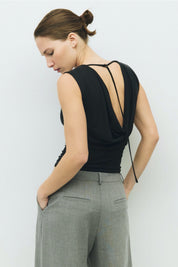 The Benson Top is a luxurious modal piece featuring a wide neckline and a stunning cowl back detail for a relaxed yet stylish look. With a unique D-ring strap detail on the back and buttery soft fabric, it’s a chic and comfortable addition to any wardrobe.