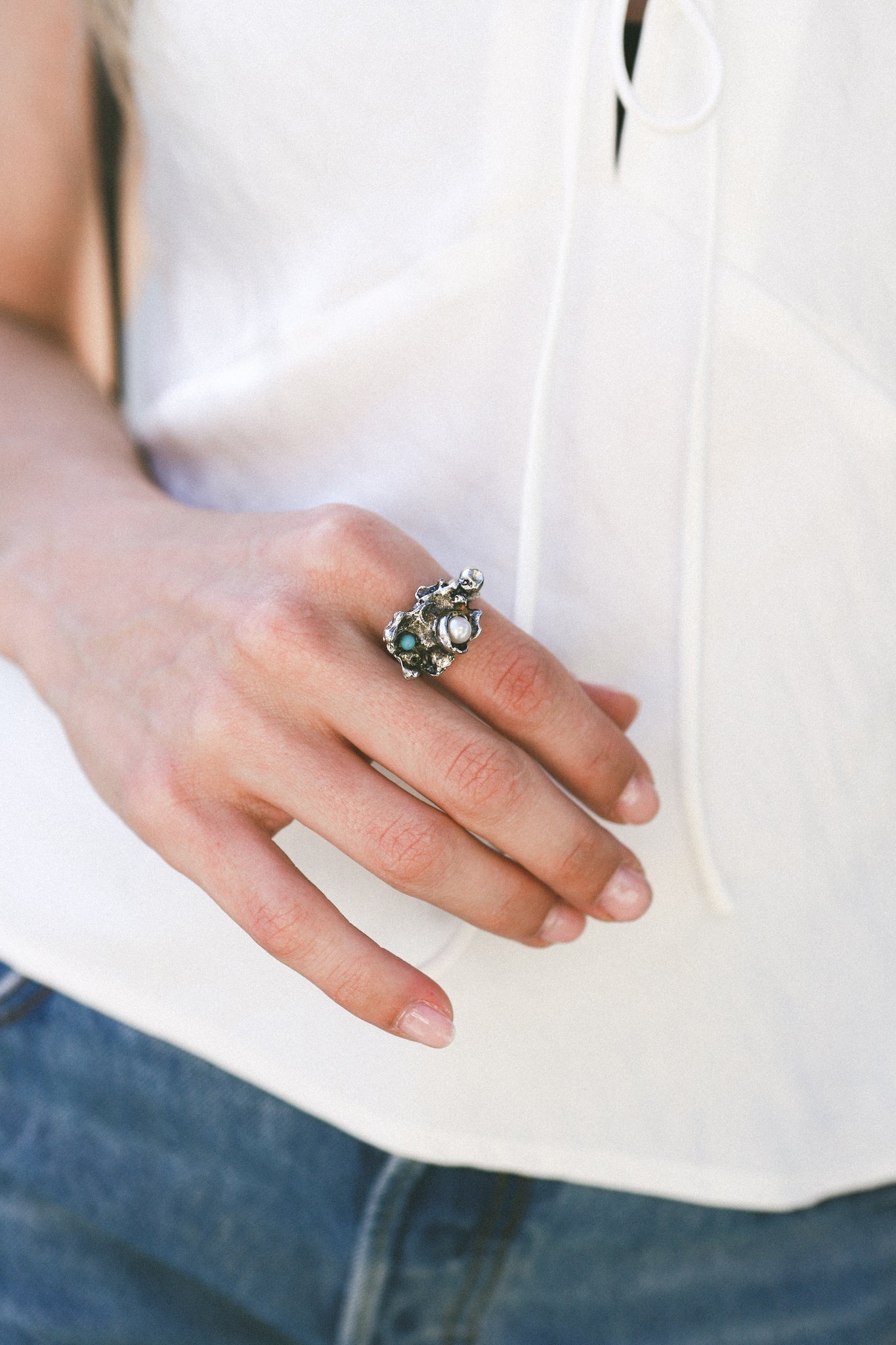 Silver Pearl Cluster Ring