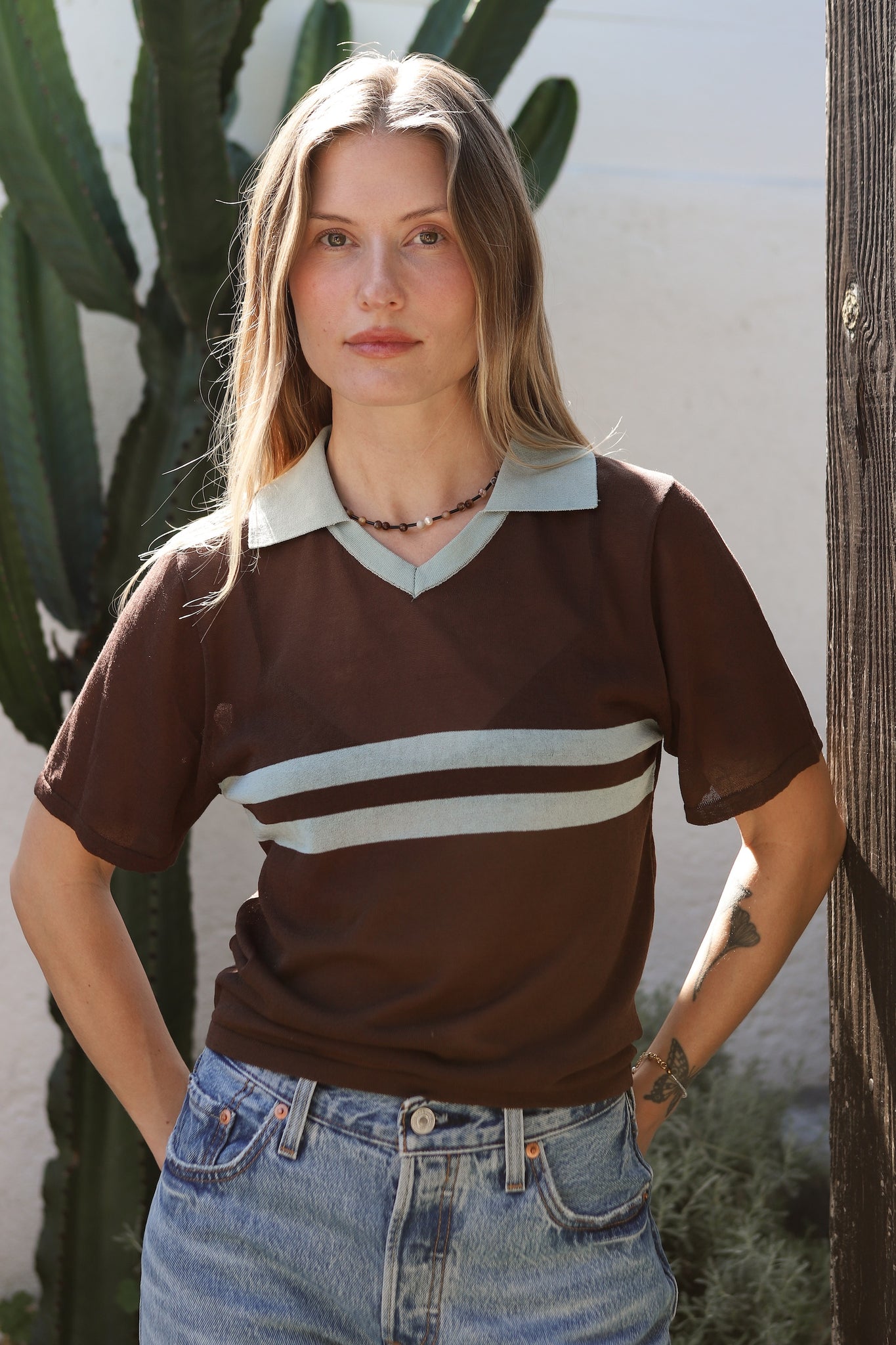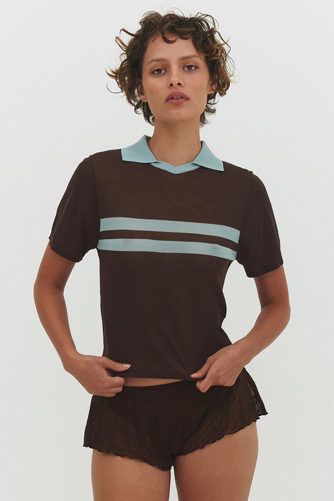 Cocoa Cream Stripe Polo Top