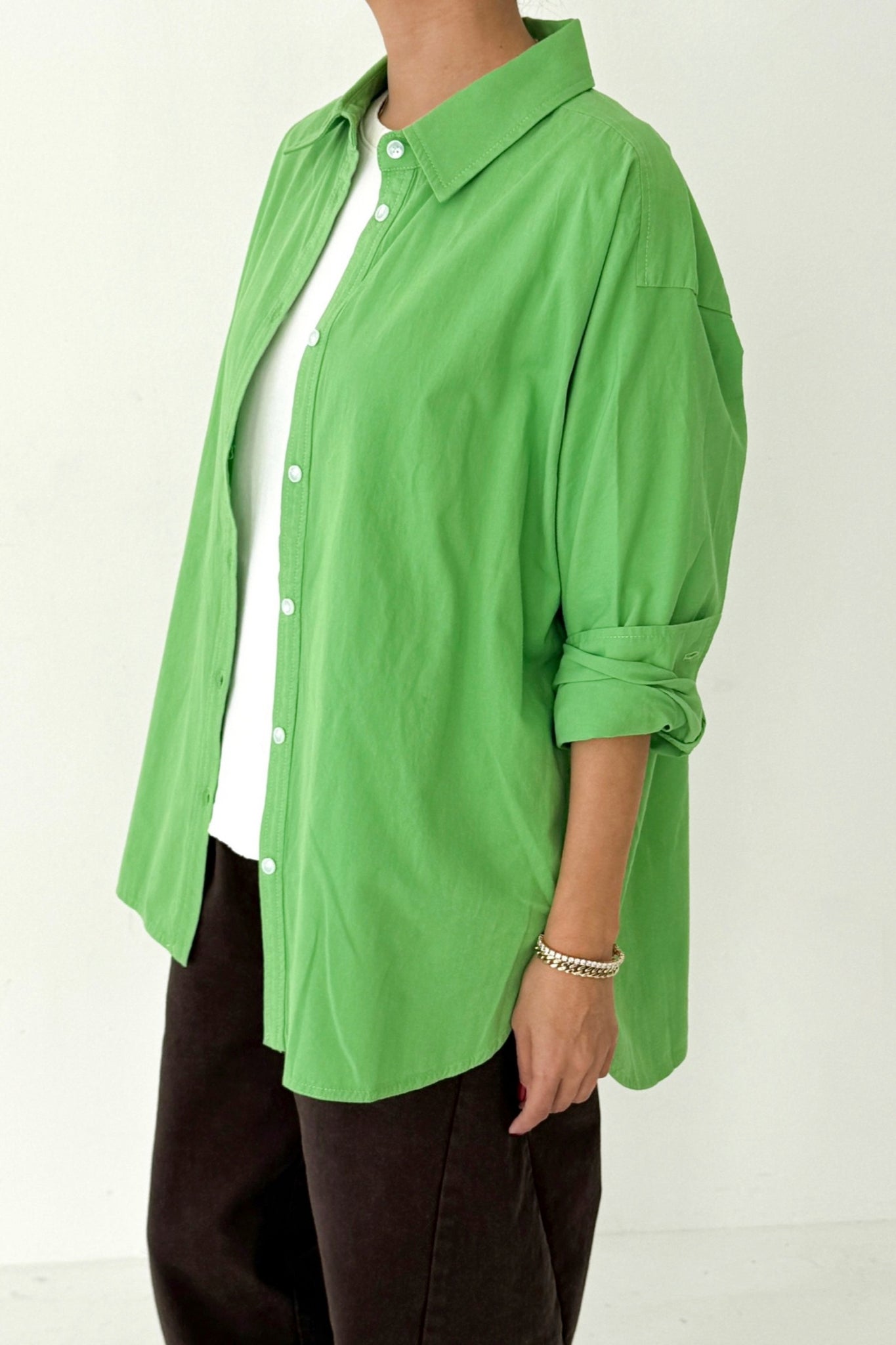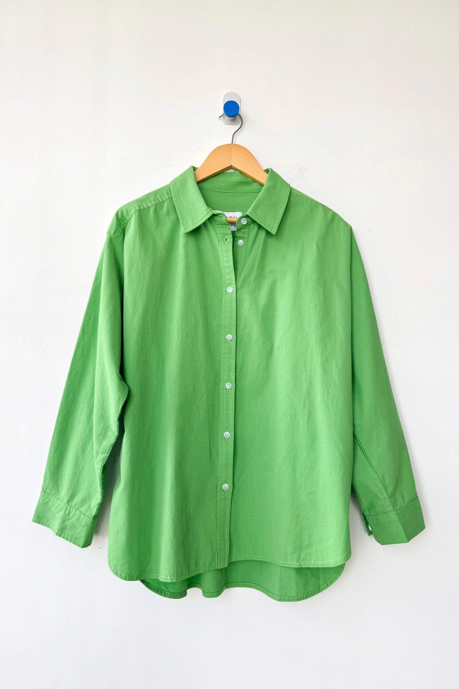The button-up shirt, reimagined. Designed to feel like the perfect borrowed shirt, it features a slightly oversized, relaxed fit that works effortlessly layered or worn on its own.