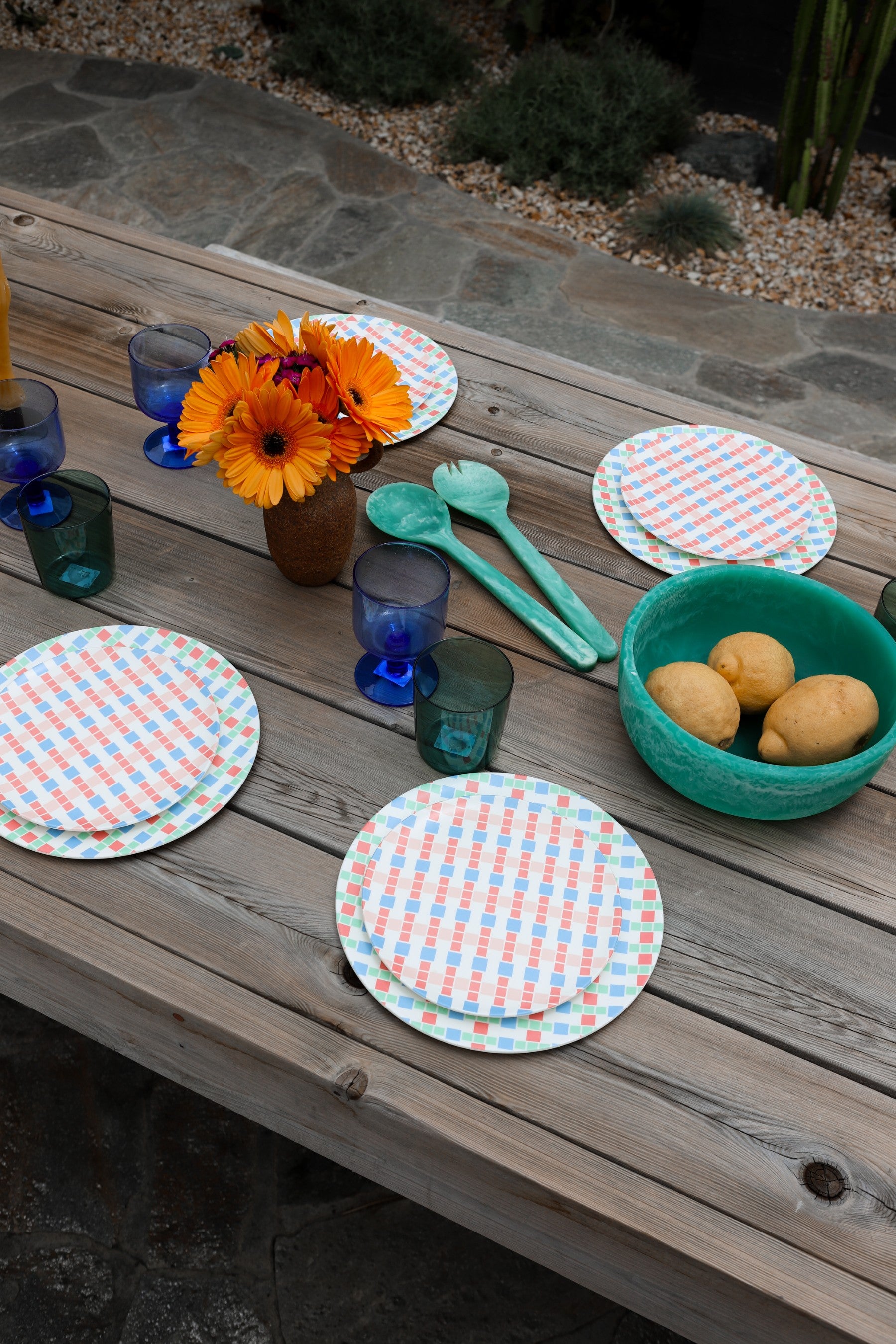 Theses bamboo plates are durable, dishwasher safe, and very lightweight - making them ideal for outdoor entertaining as well as everyday use. The material is a mixture of bamboo, corn starch, and food grade melamine binder, with the bamboo part being the waste scrap from chopstick factories. The melamine binder ensures durability and increases the life span of the product, allowing our tableware to be used repeatedly. Manufacturing bamboo composite tableware requires little water and energy compared to ceramic tableware production.