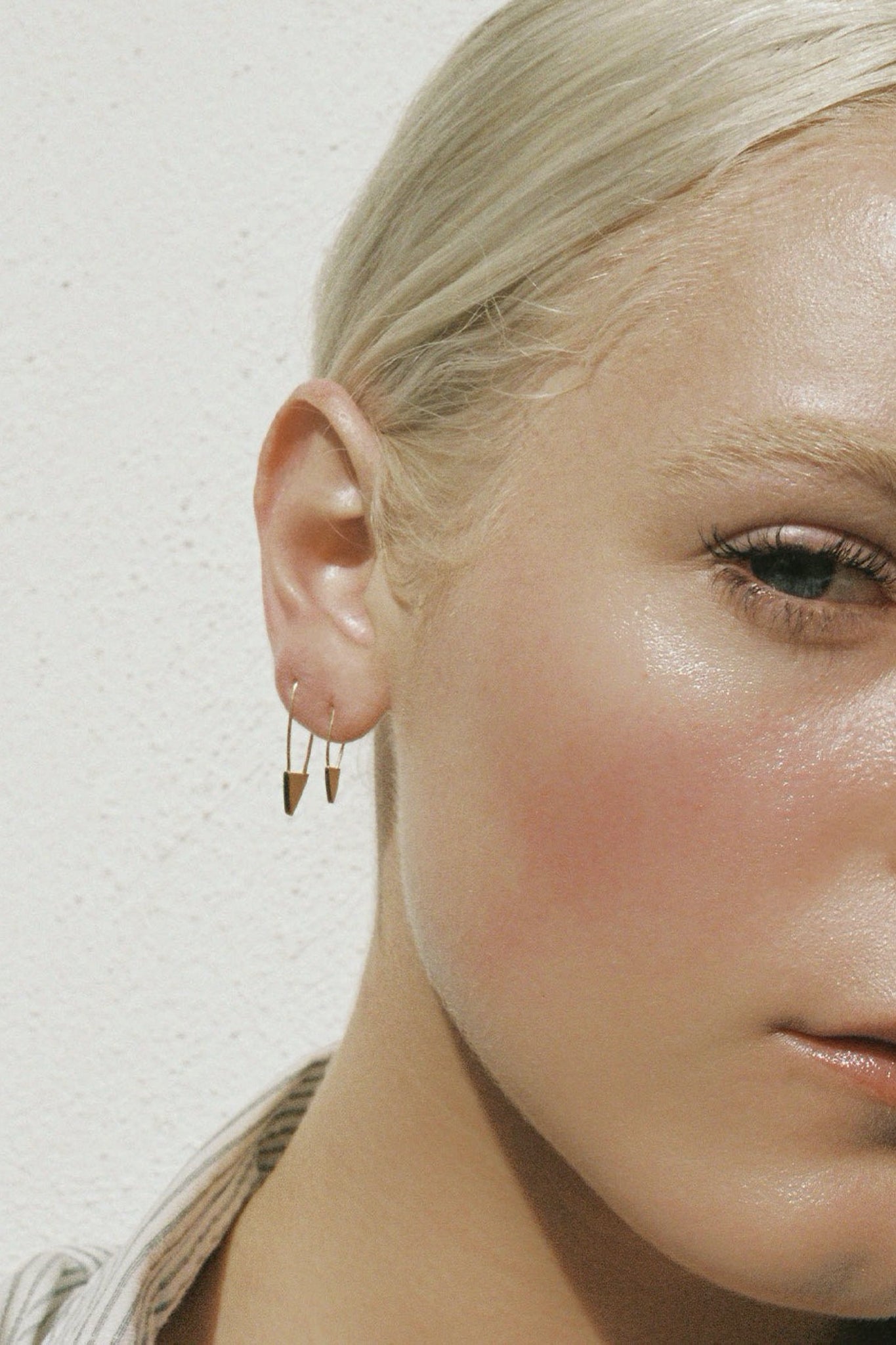Style is in the details. Minimalist in size but maximalist in shine, the Mini Triangle Safety Pin Earring is crafted from 14Kt gold that gleams in the light. Make it your signature everyday piece.