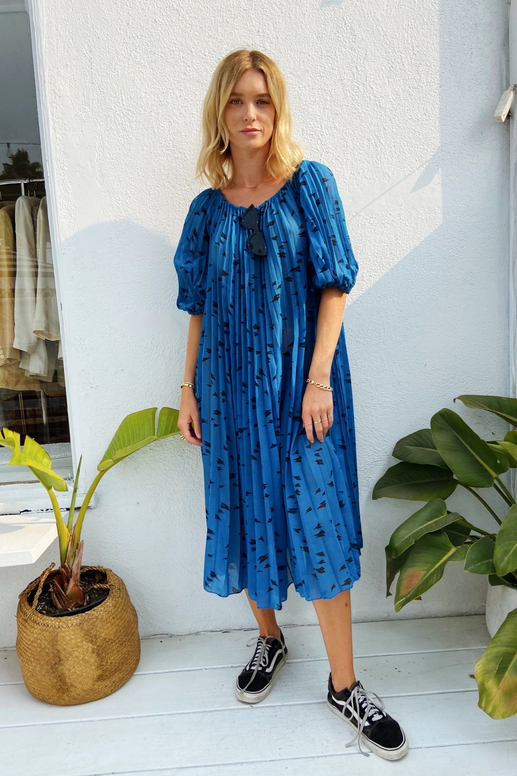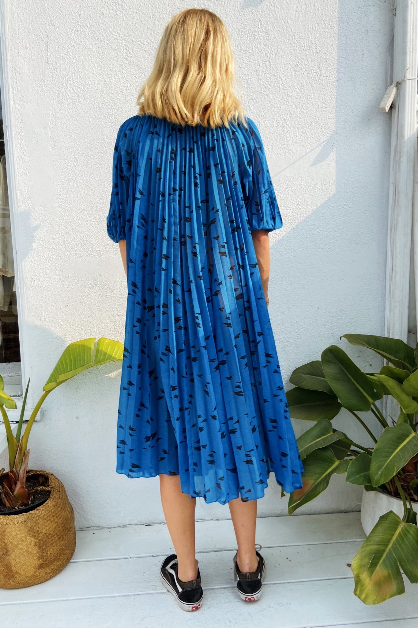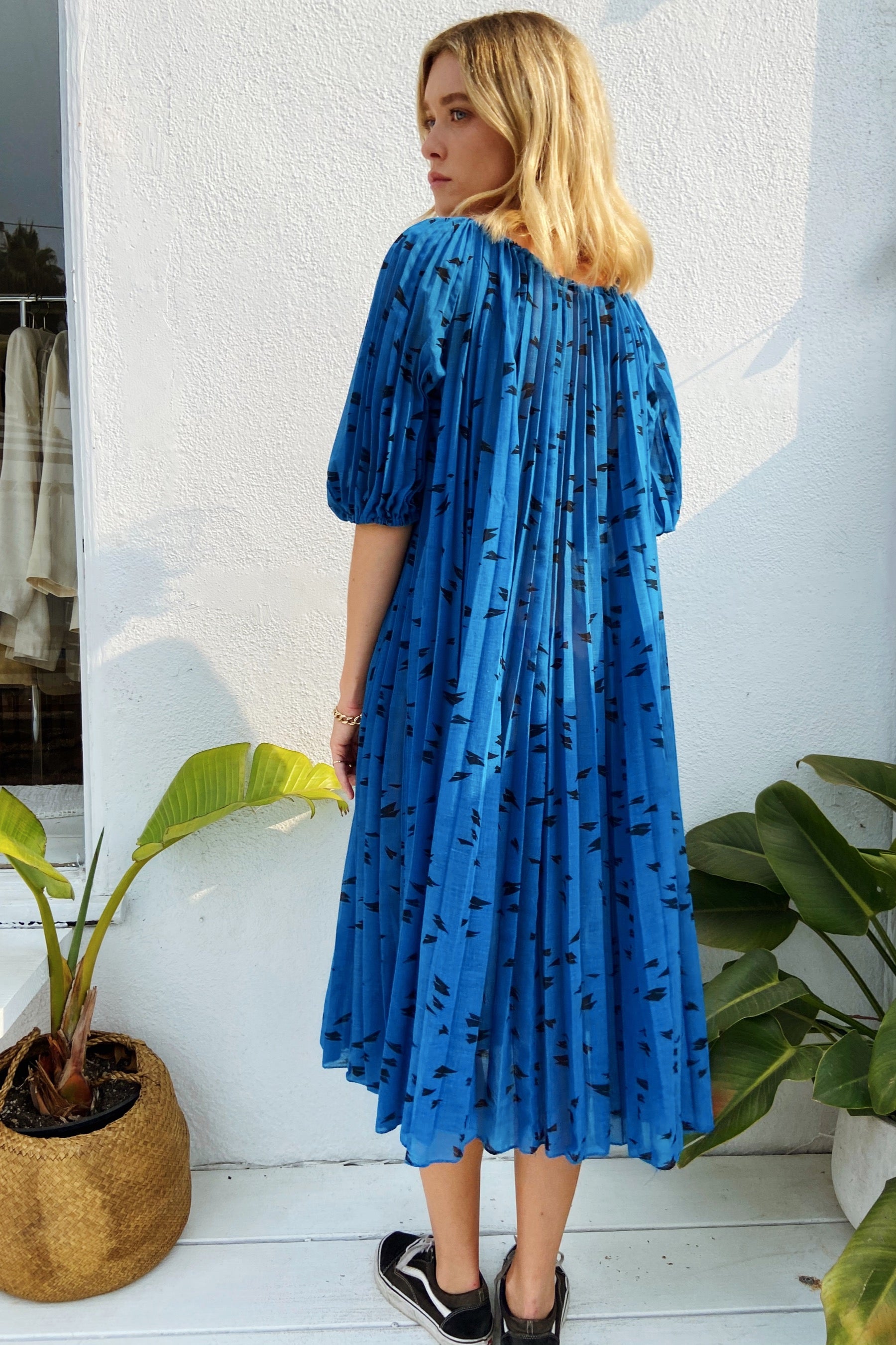 1980s Blue Dress with Accordion Details