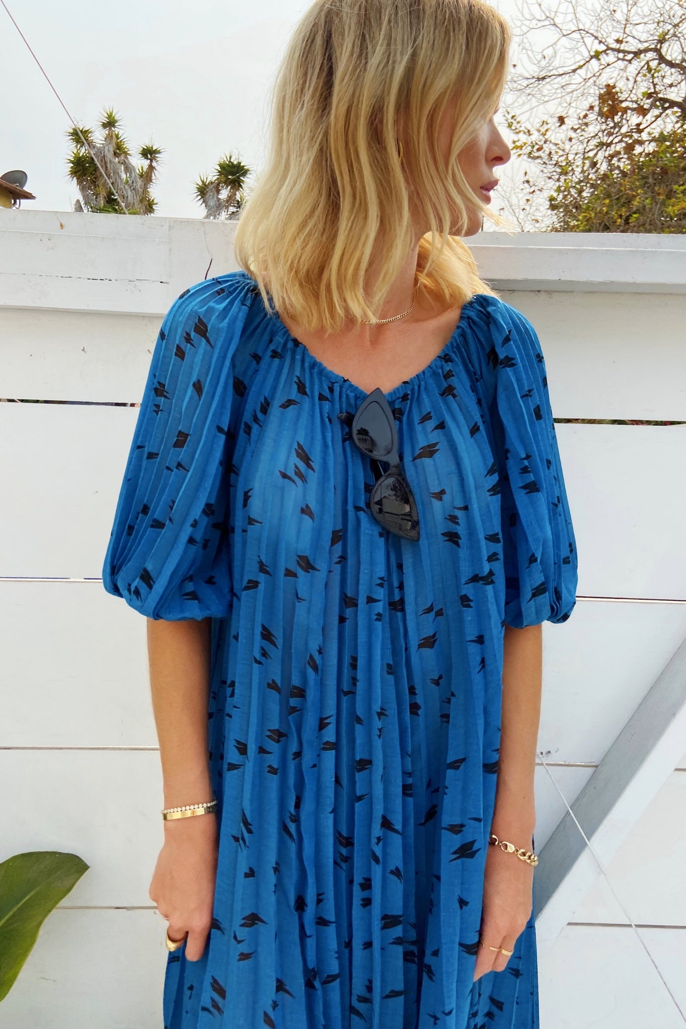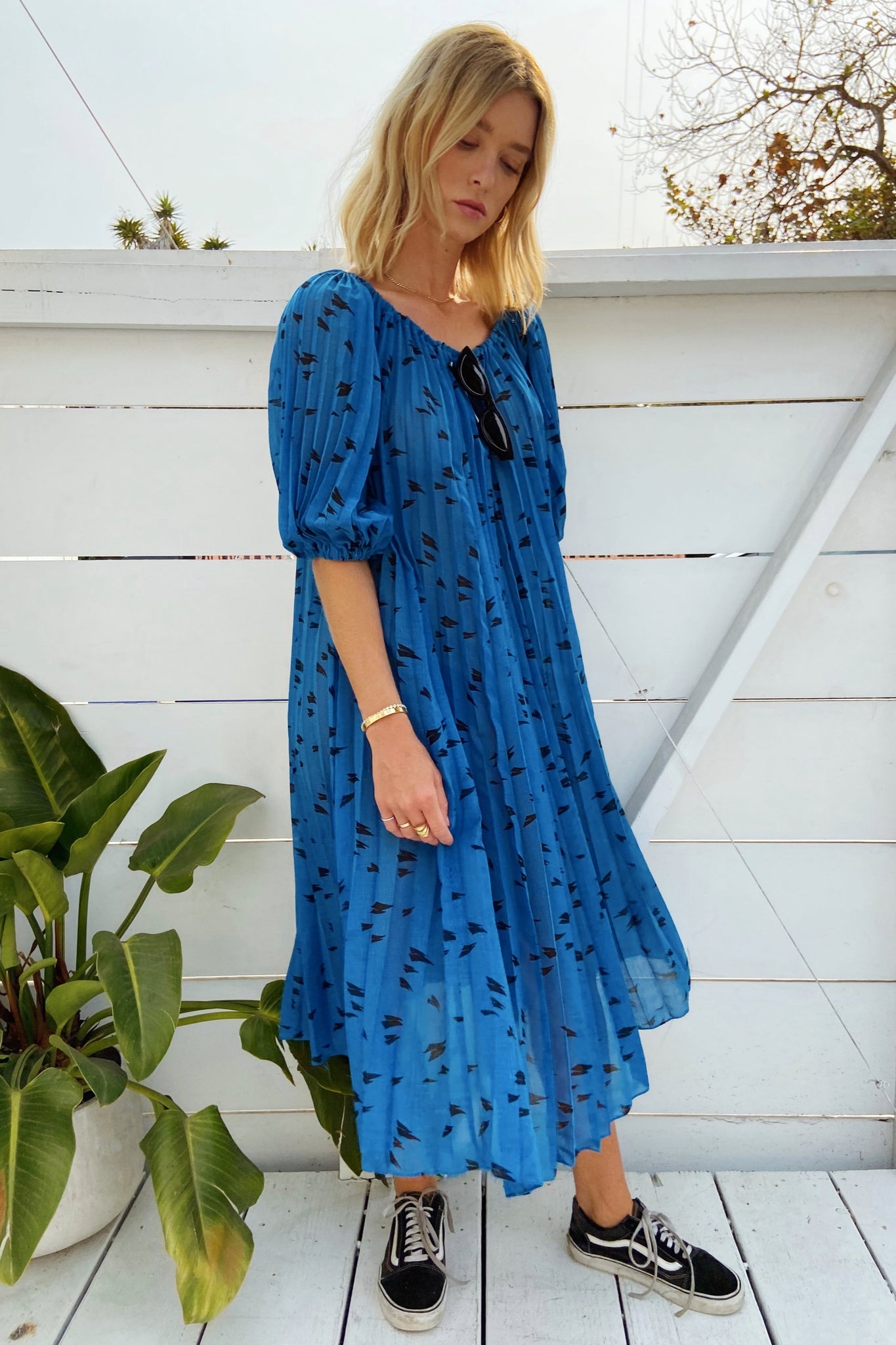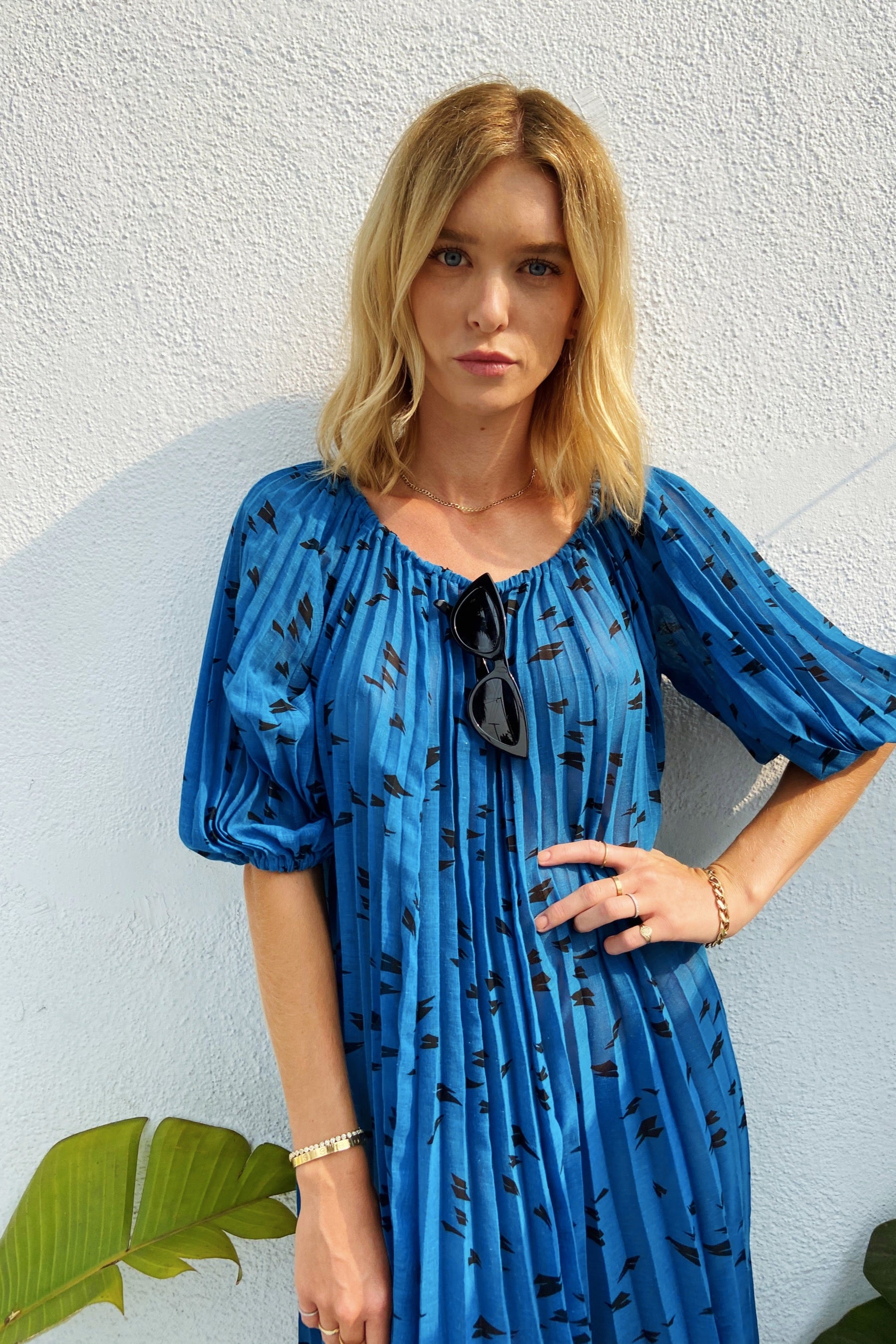 1980s Blue Dress with Accordion Details