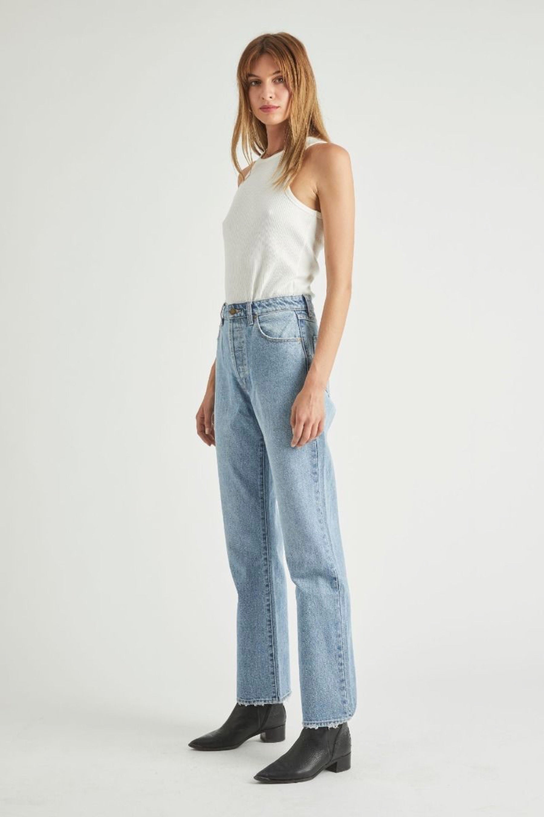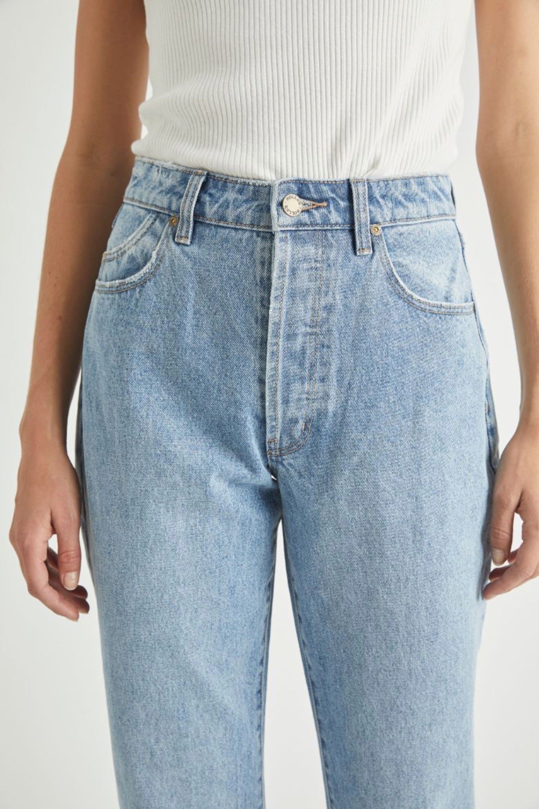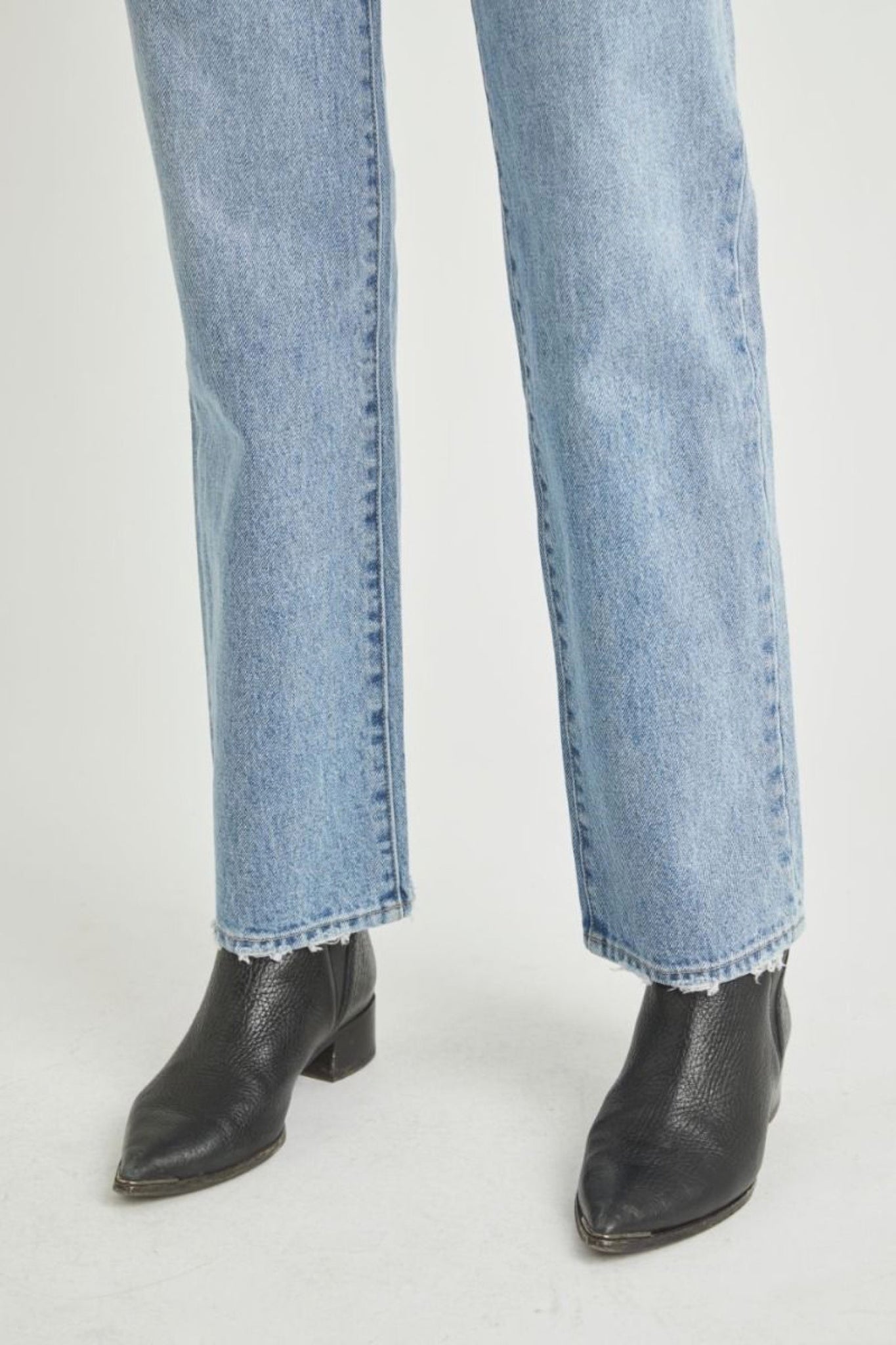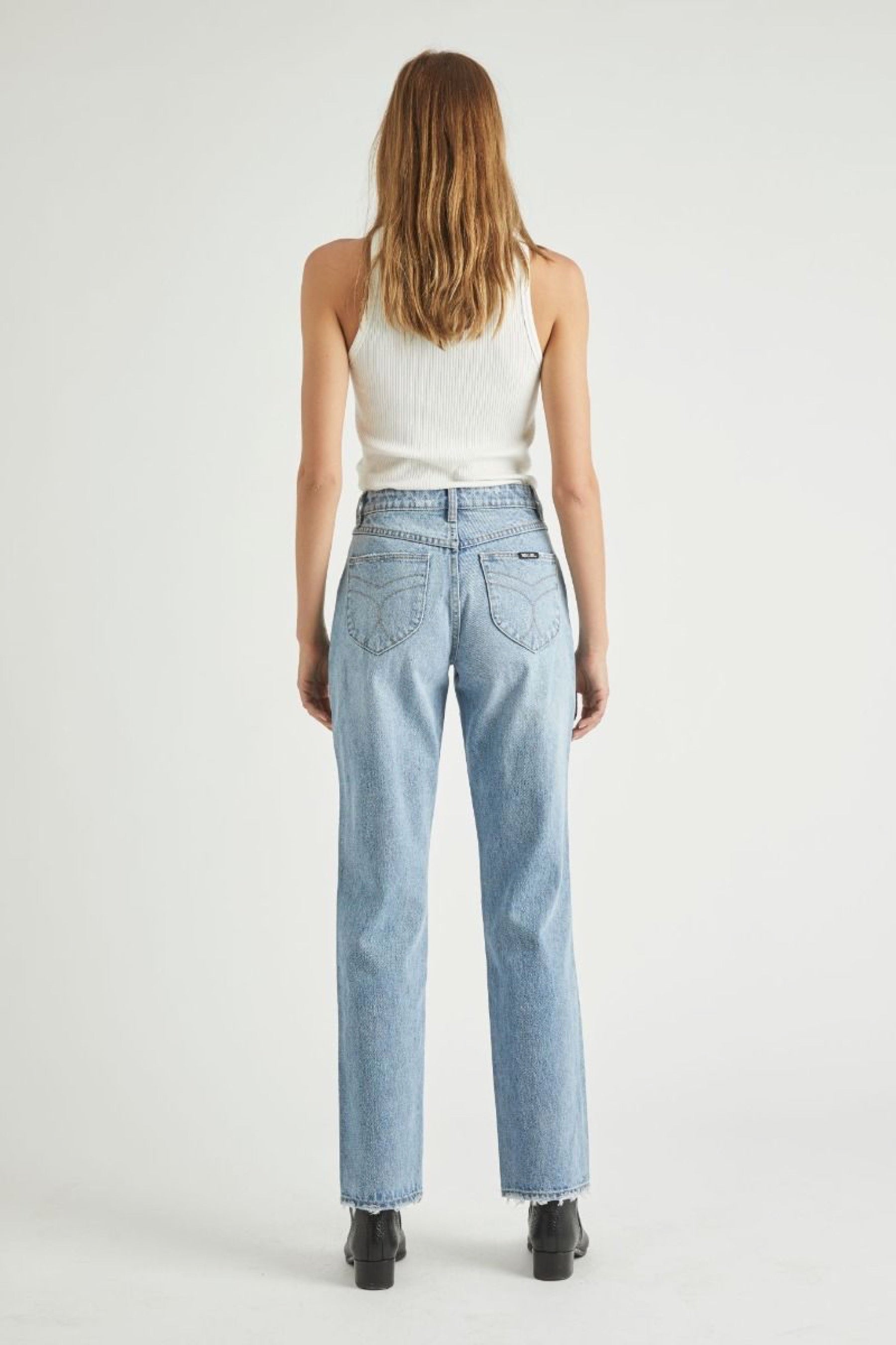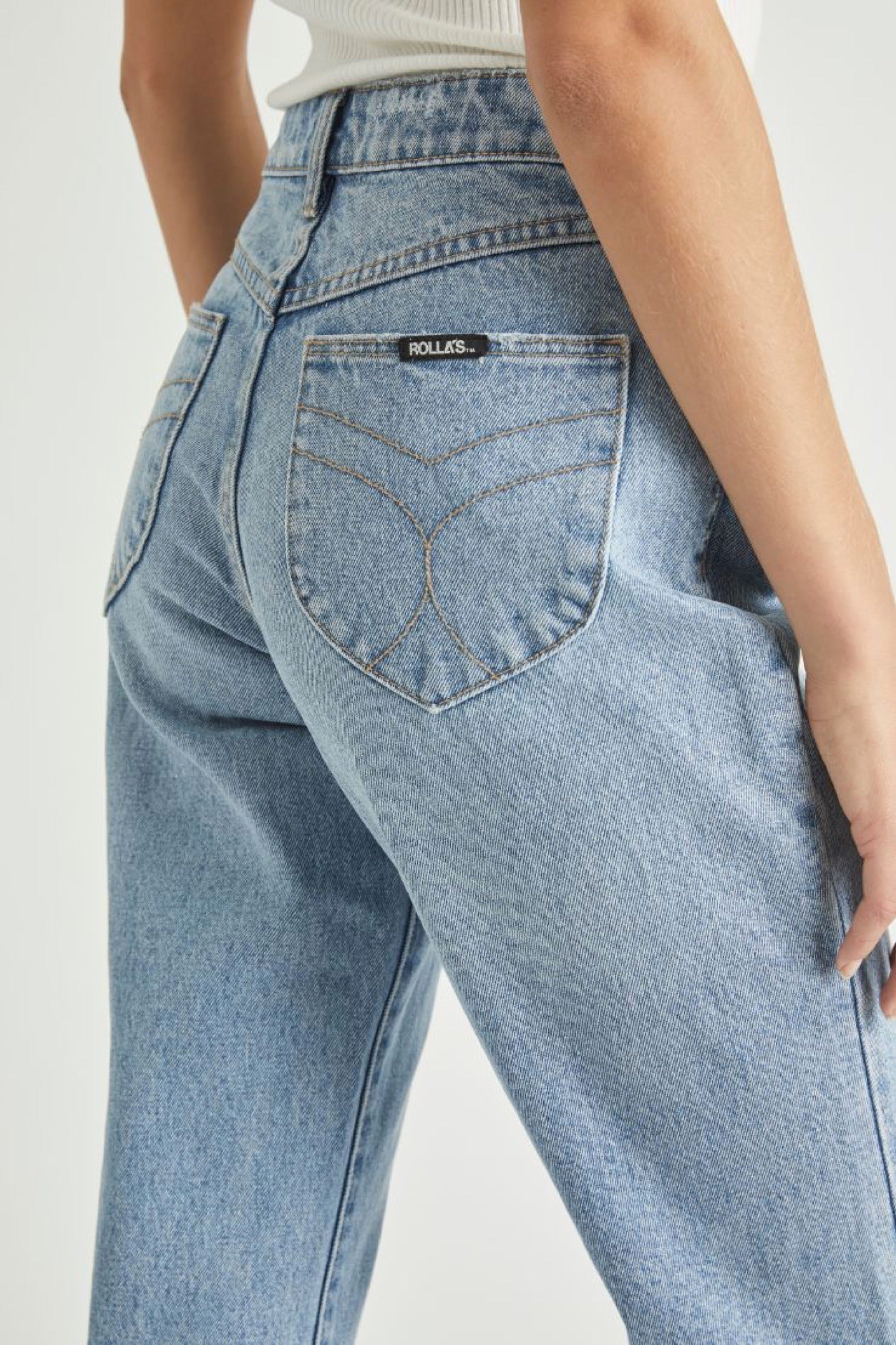 Rollas Classic Straight Jean is inspired by late 80's and early 90's looks and showcases a high waist with a full length, straight leg profile. Its classic five pocket design complements a button fly with a distressed hem.