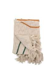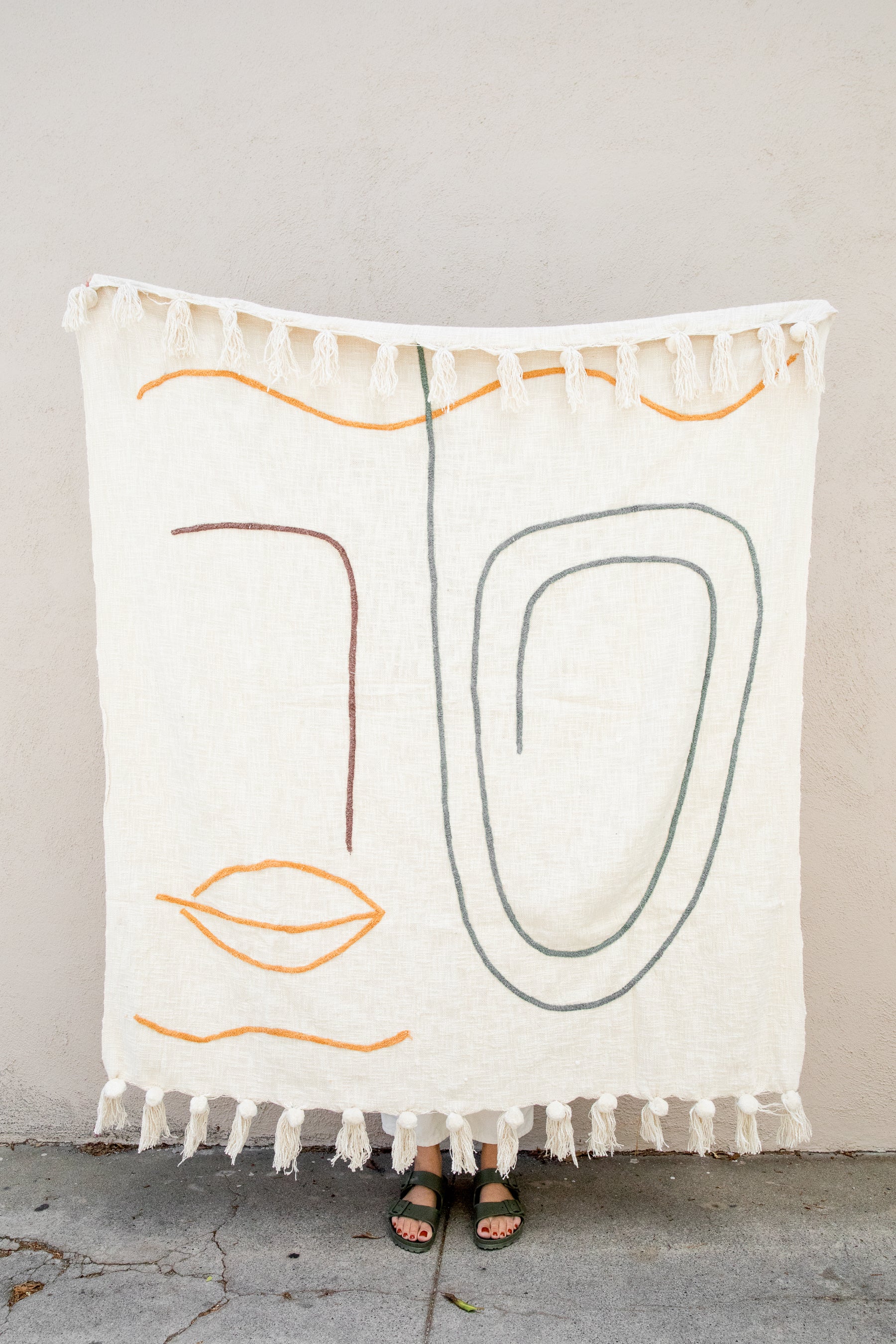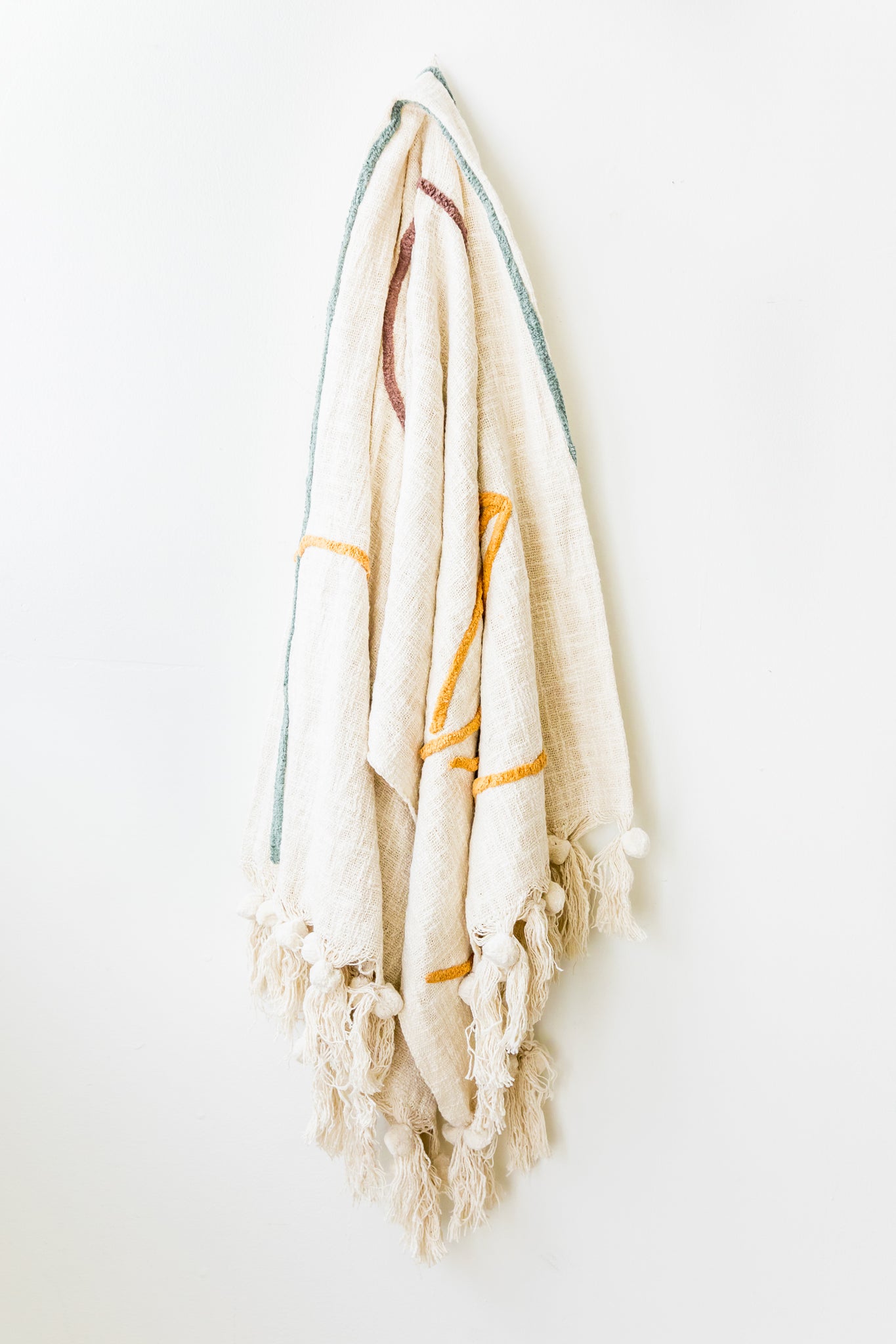 This cozy blanket with abstract embroidered stripes is perfect for a summer night on the beach or at the end of your bed!