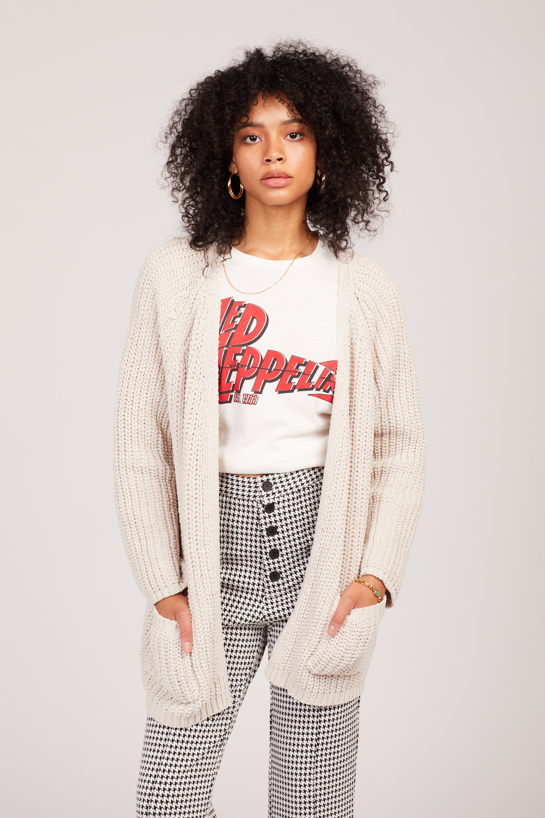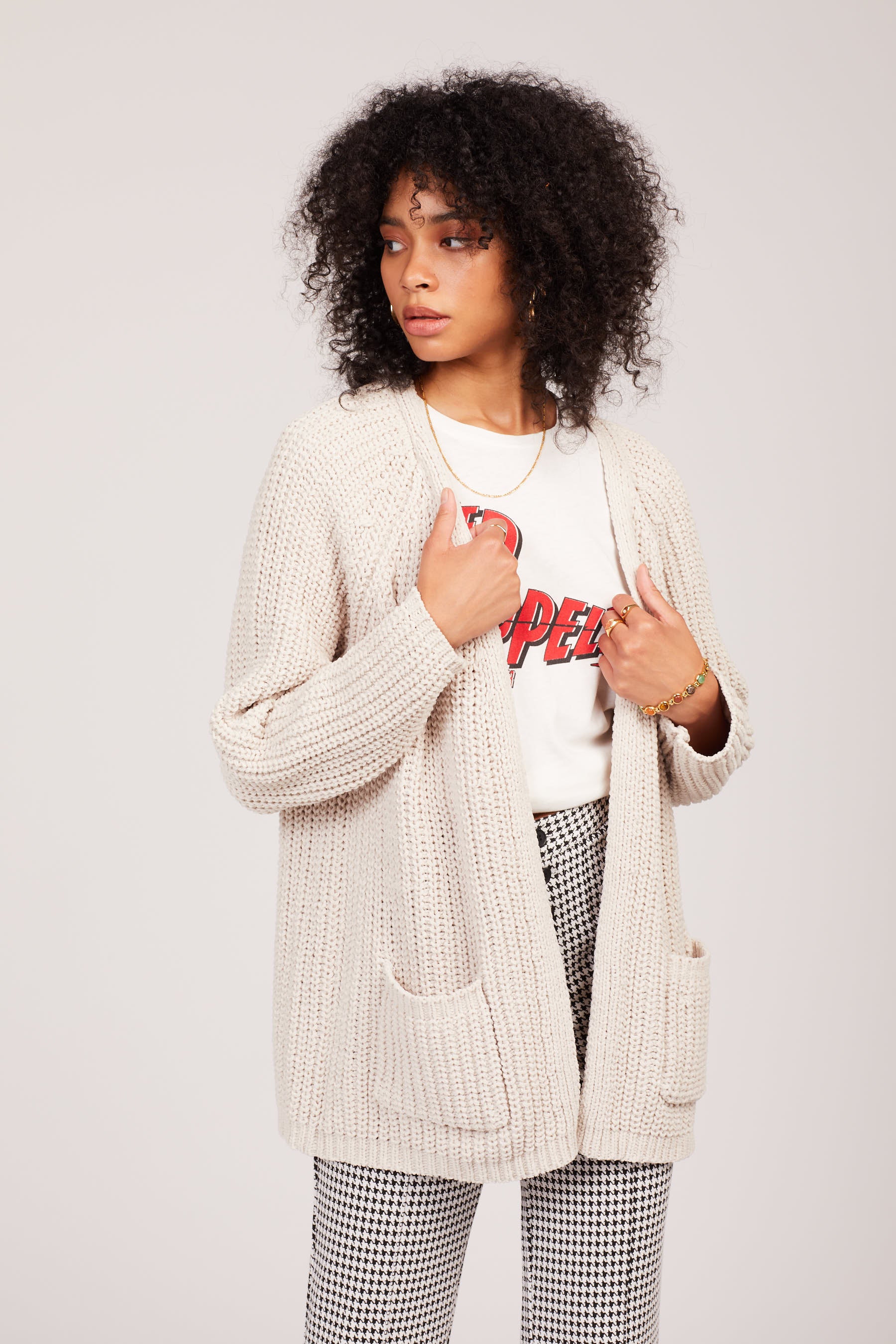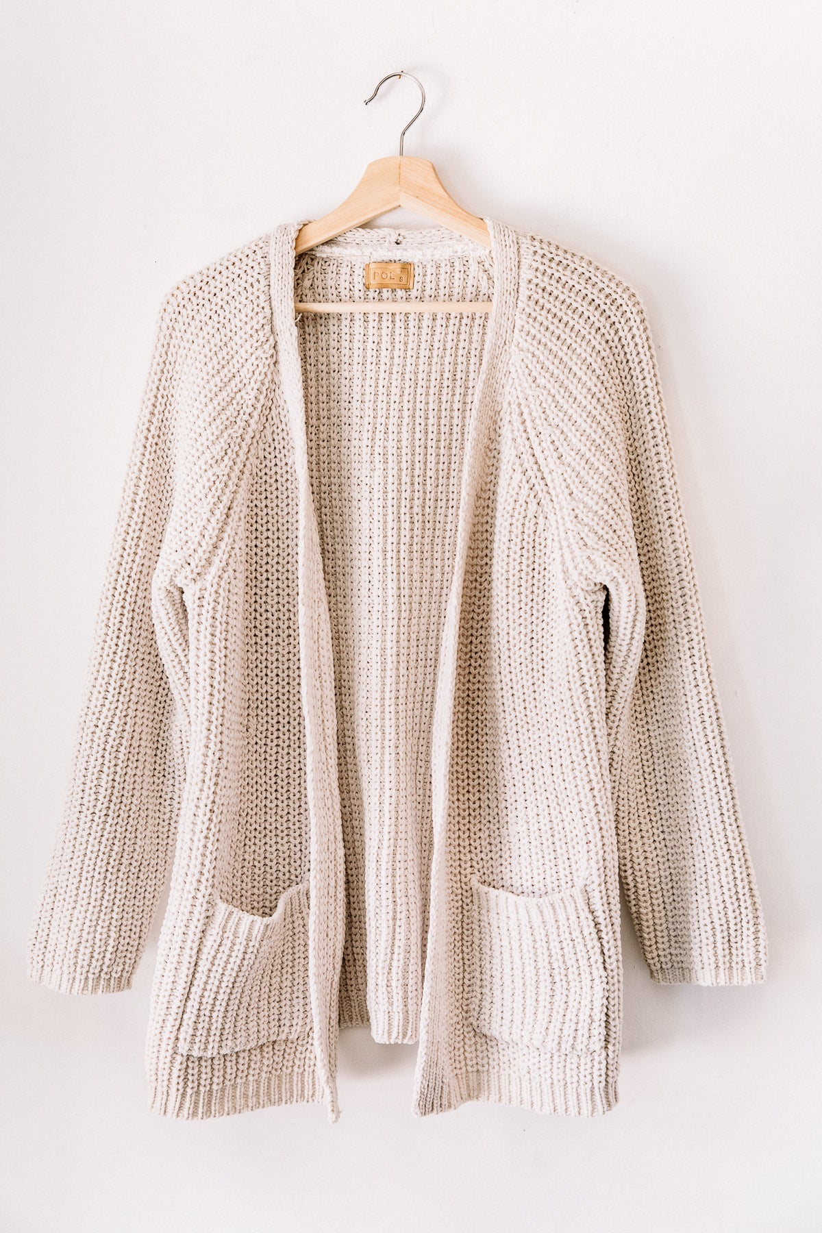 Your essential knit cardigan for the cozy weather ahead. Open front cardigan with two front pockets.