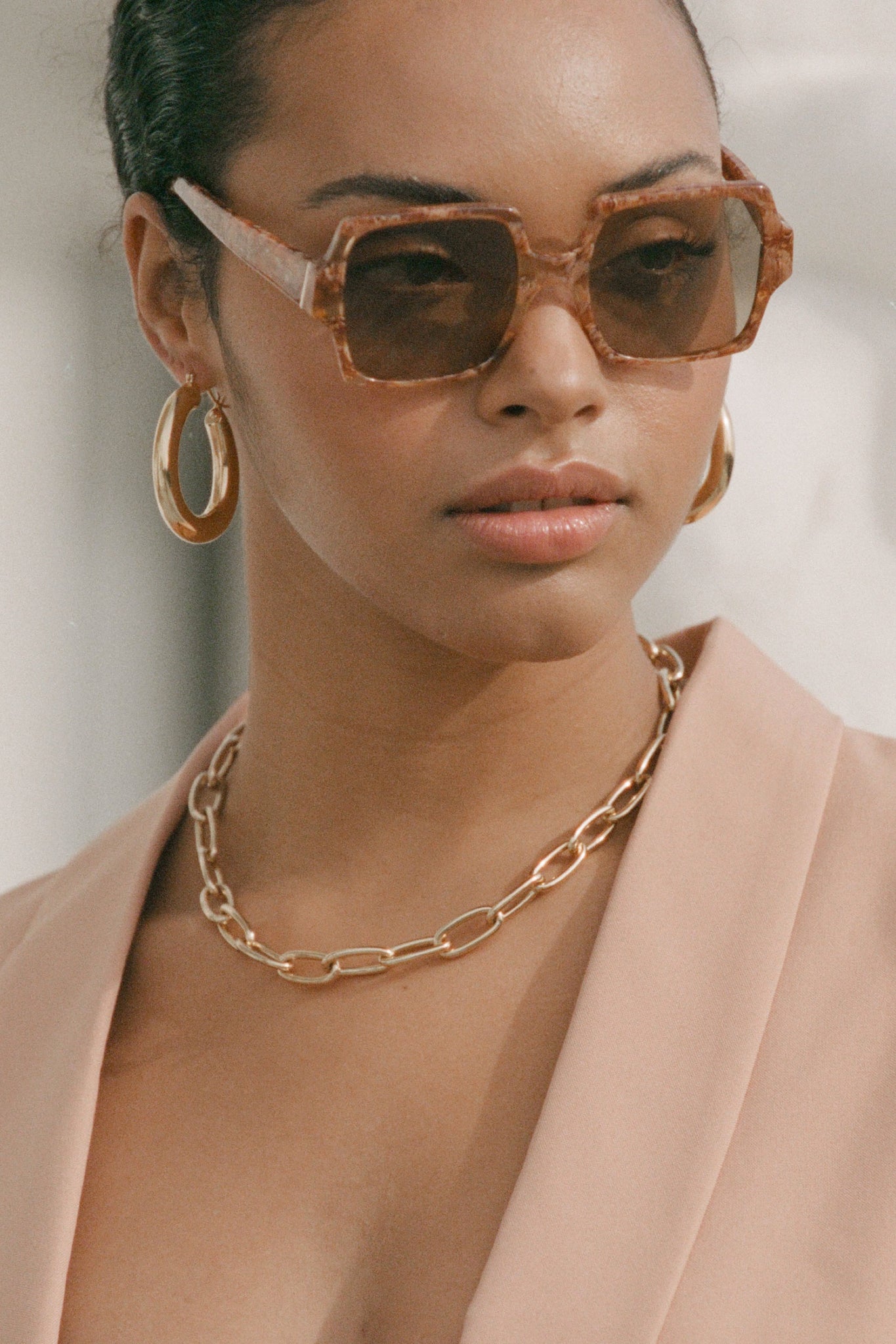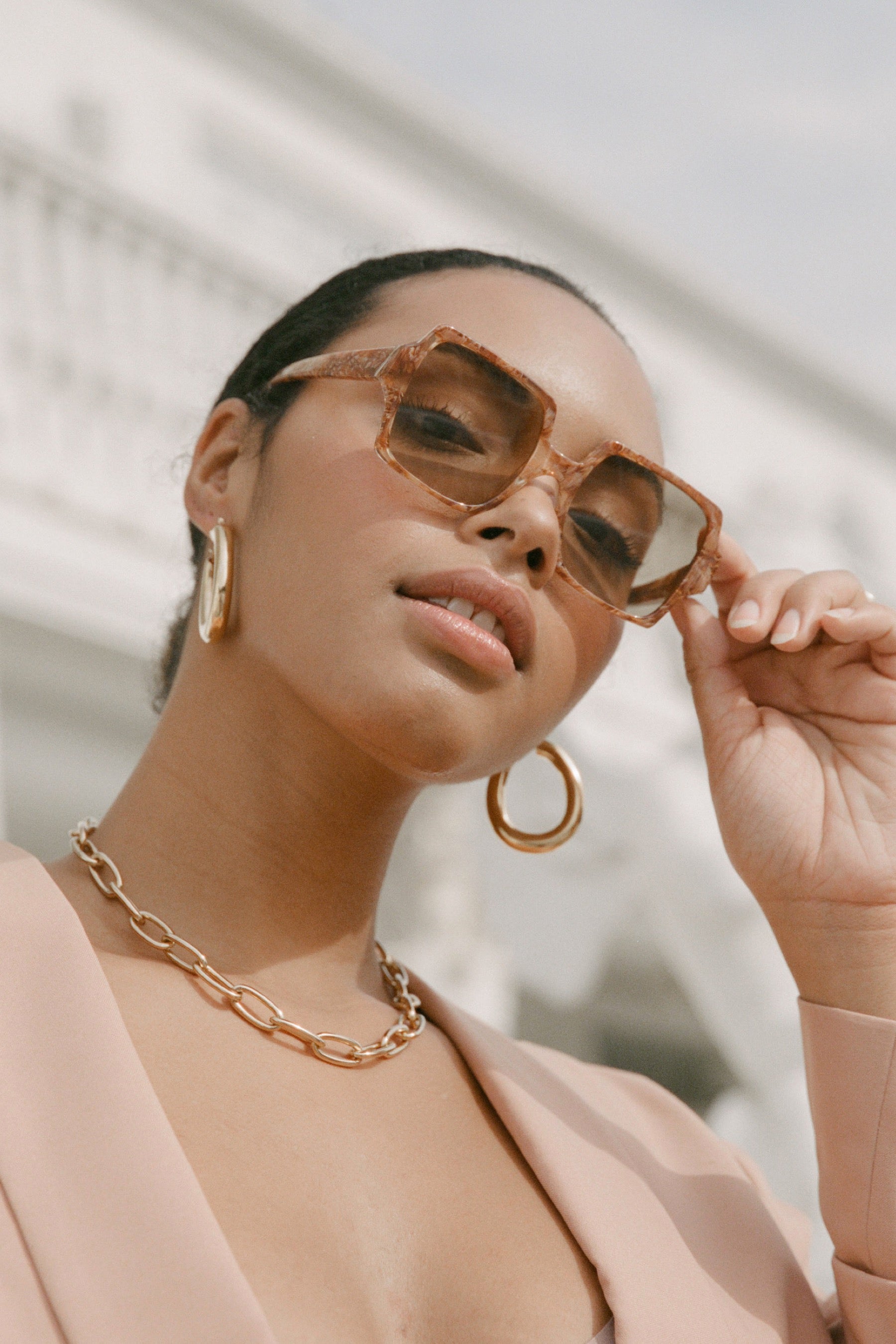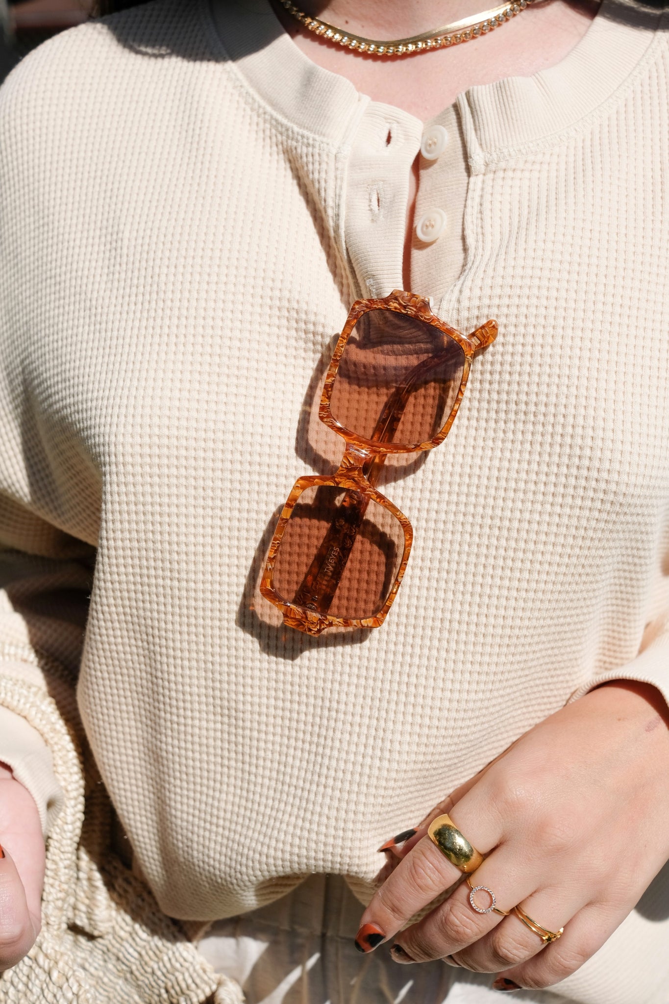 Comes with vegan leather pouch, branded cleaning cloth and box. Velvet Canyon sunglasses are made with the highest quality acetate and custom tinted lenses. Featuring signature champagne gold branding and details.