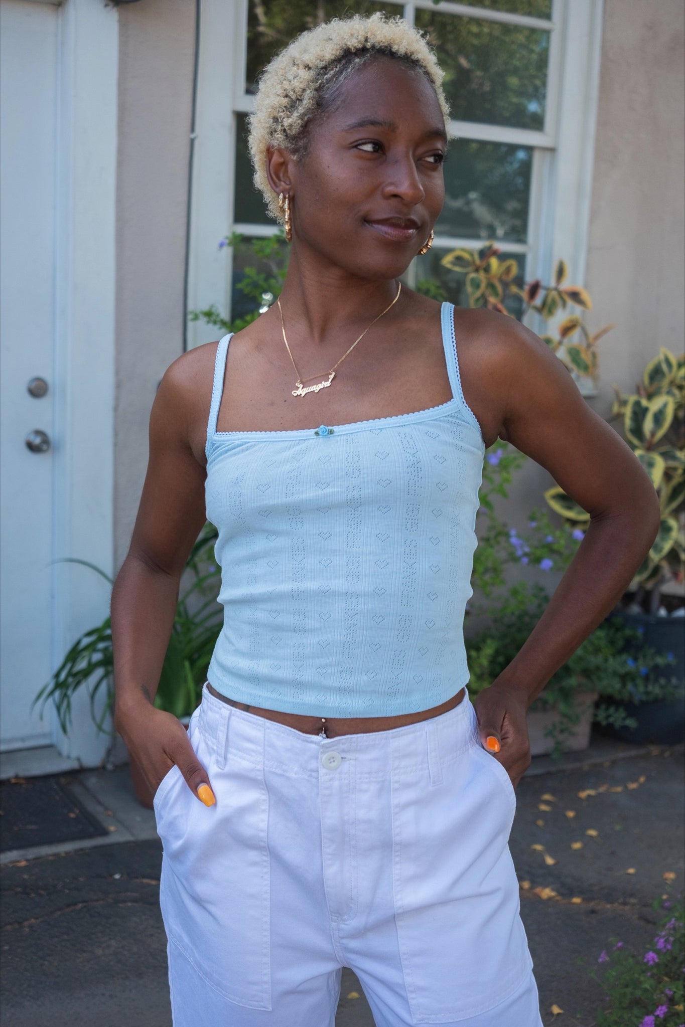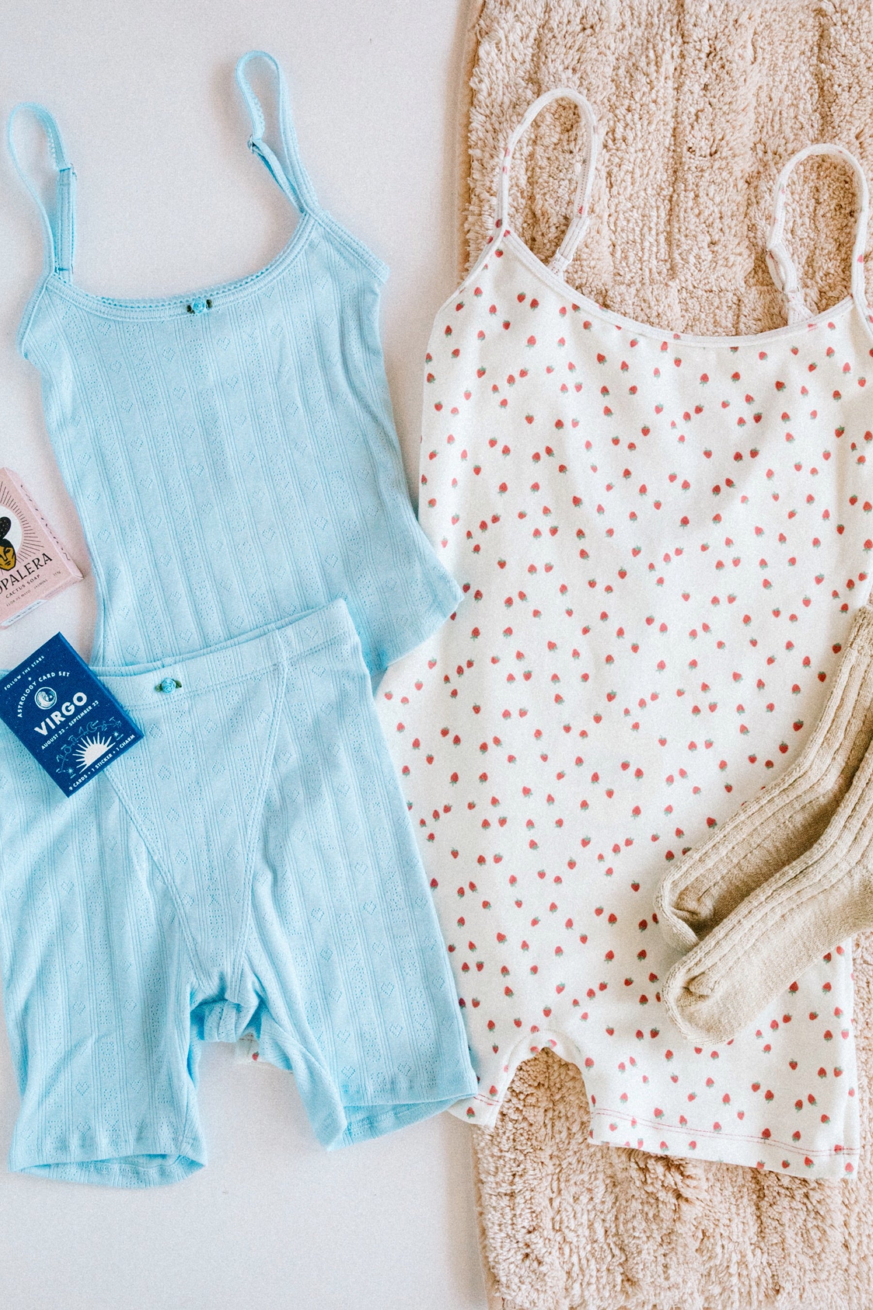 Courtney's the cutest lounge tank complete with simple thin straps and a scoop neck cut.