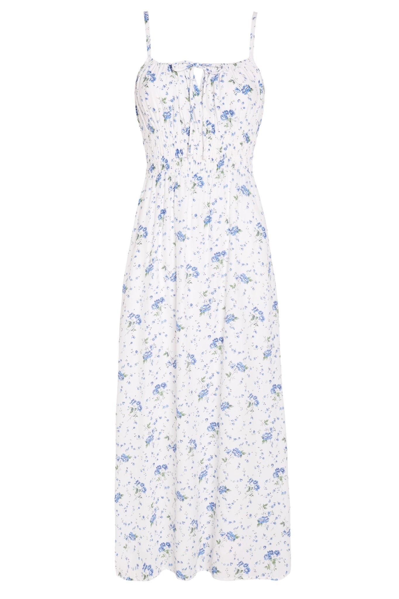 This hand-printed floral print dress is the perfect easy wearing slip dress for your wardrobe. Featuring a square neckline, adjustable over the shoulder straps, ruched waistline and simple slip style skirt with invisible side seam zipper.