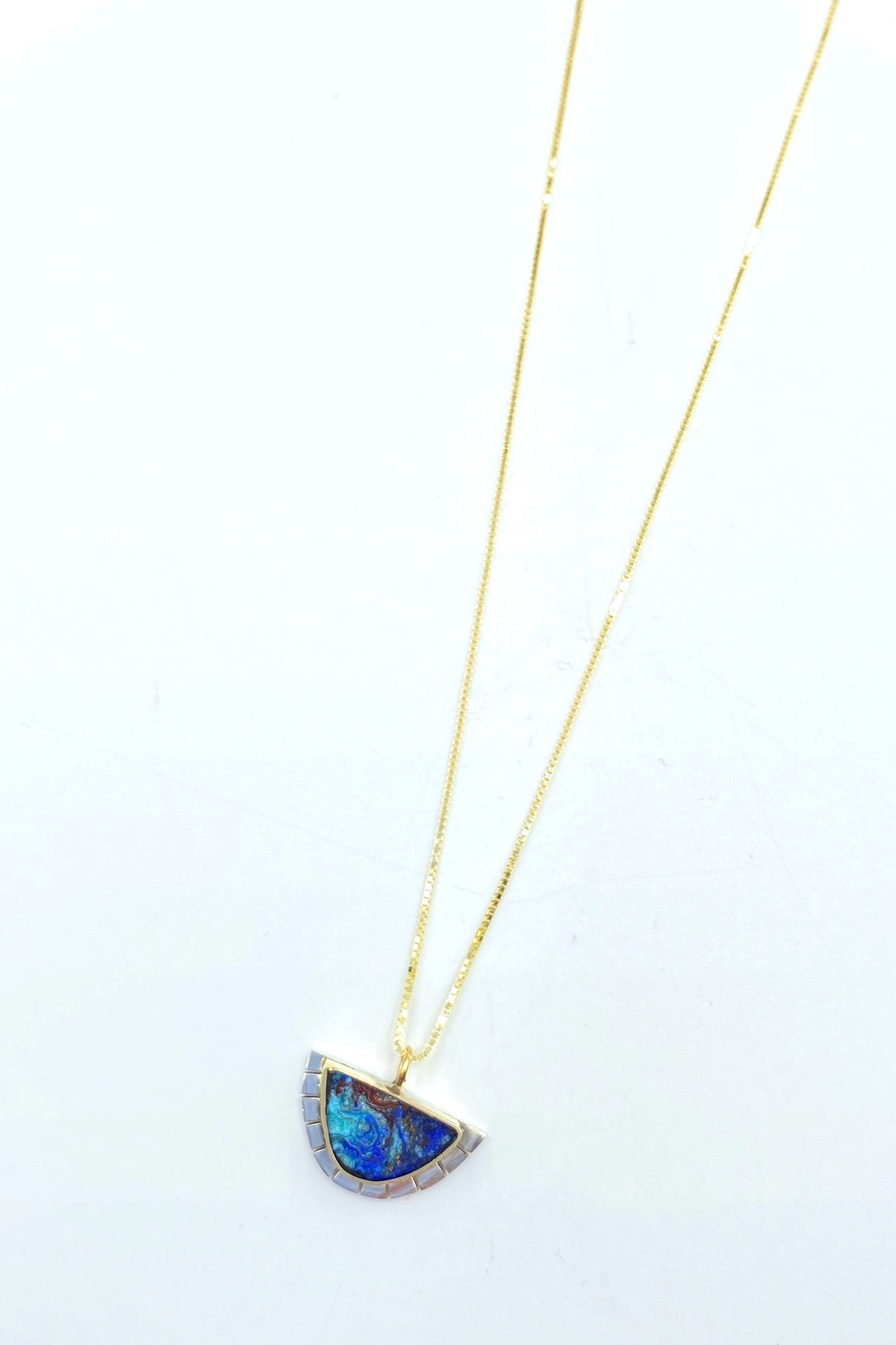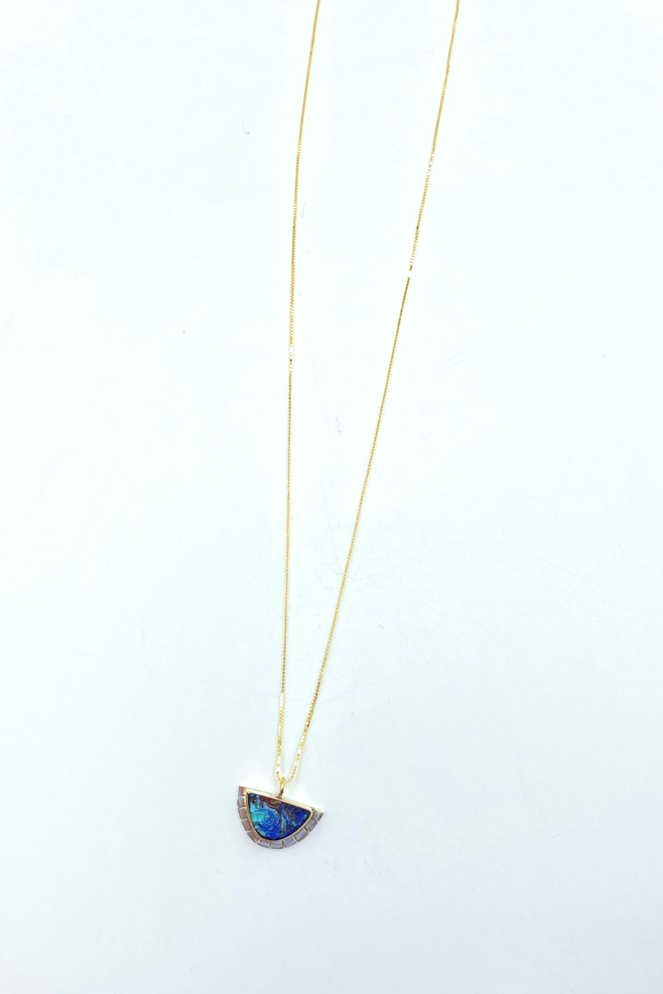 Beautiful Azurite stone in a half sol charm. The serrated sterling silver "wings" give this necklace contrast and bring a nice amount of light to the piece.