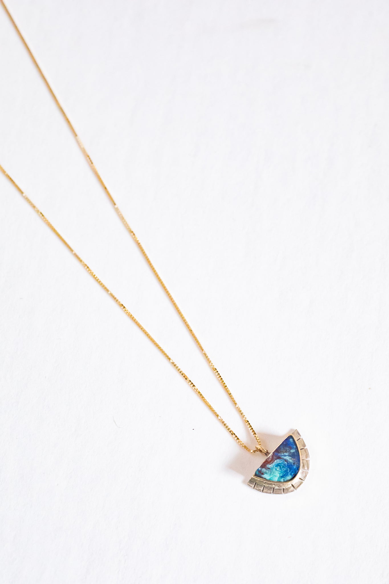 Materials: 14k gold with Azurite stone, and sterling silver wings.