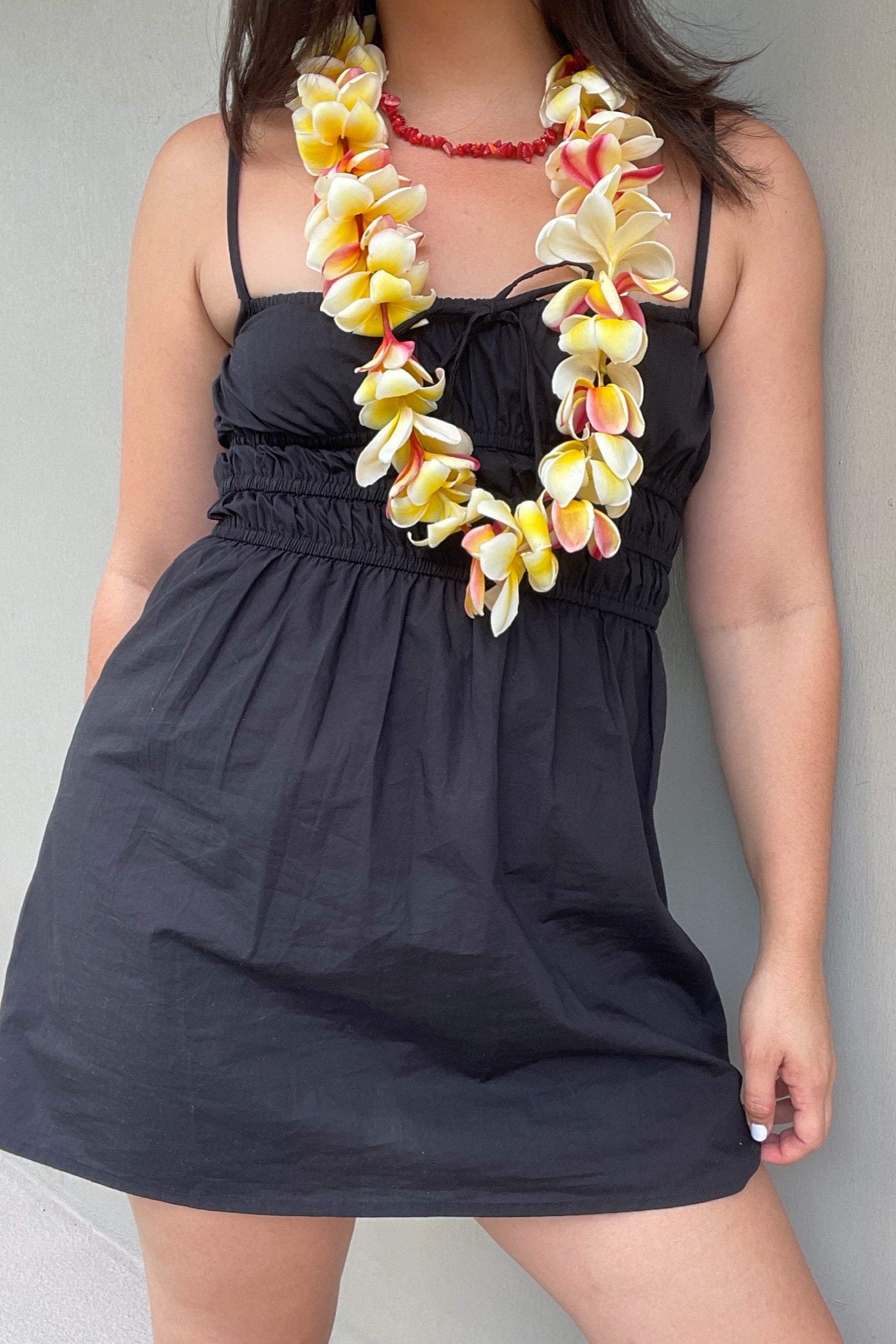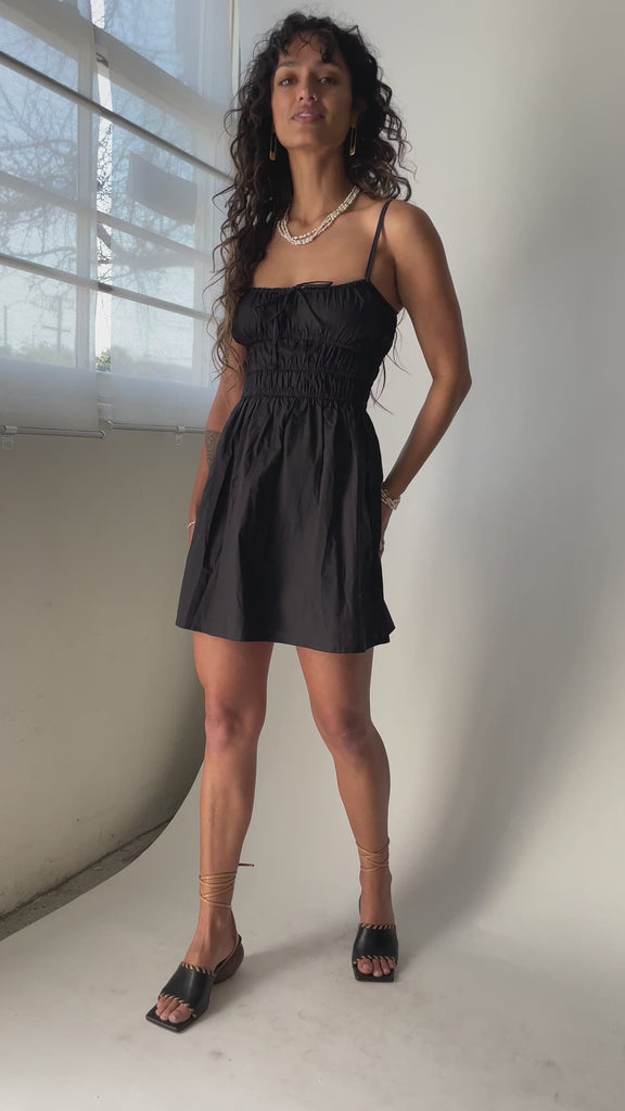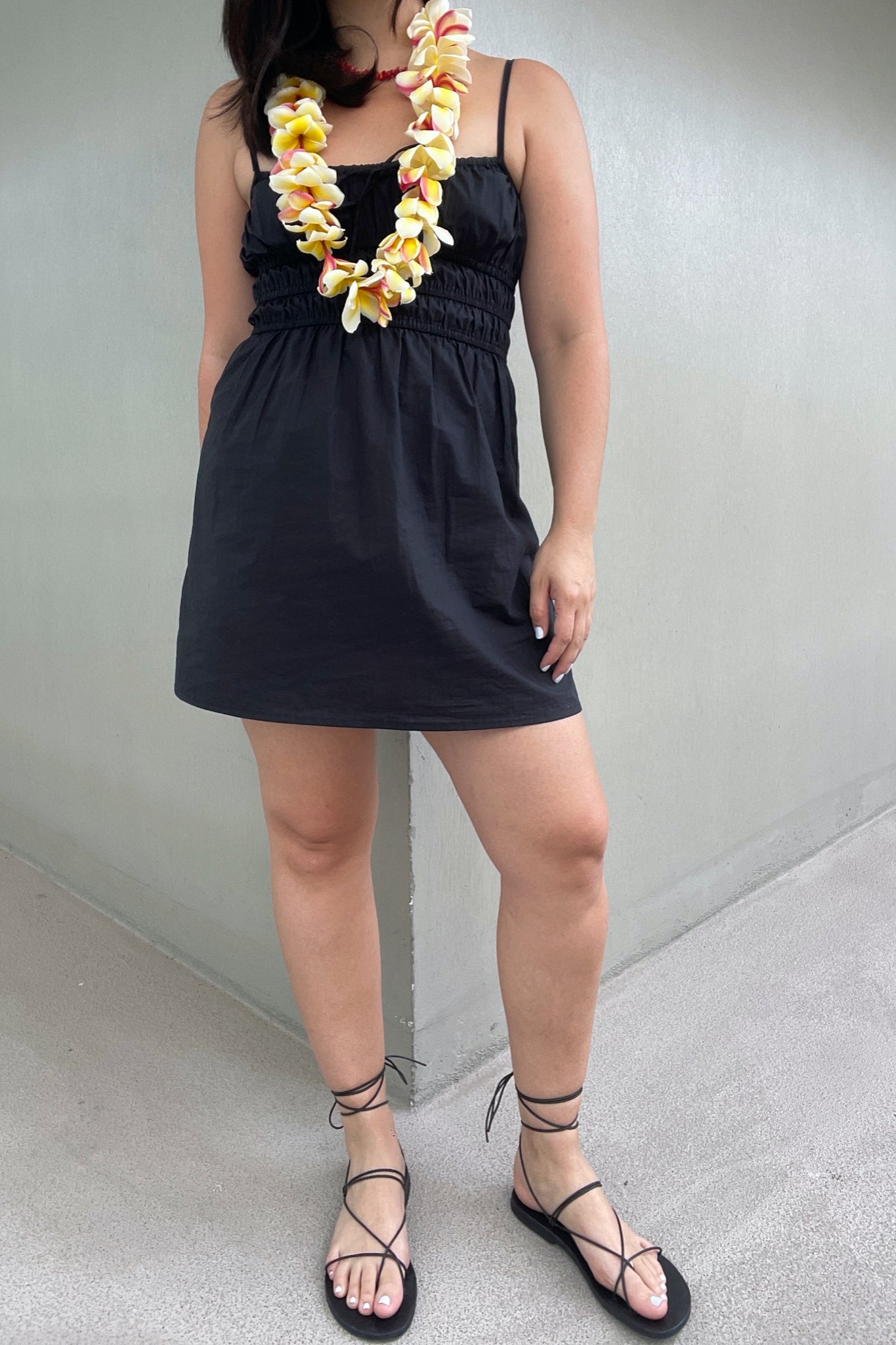 Designed for the sun seeker, the Alboa Mini Dress is defined with a scoop neckline, tie detail at front, shirred waistband for comfort and an easy-wearing gathered skirt.